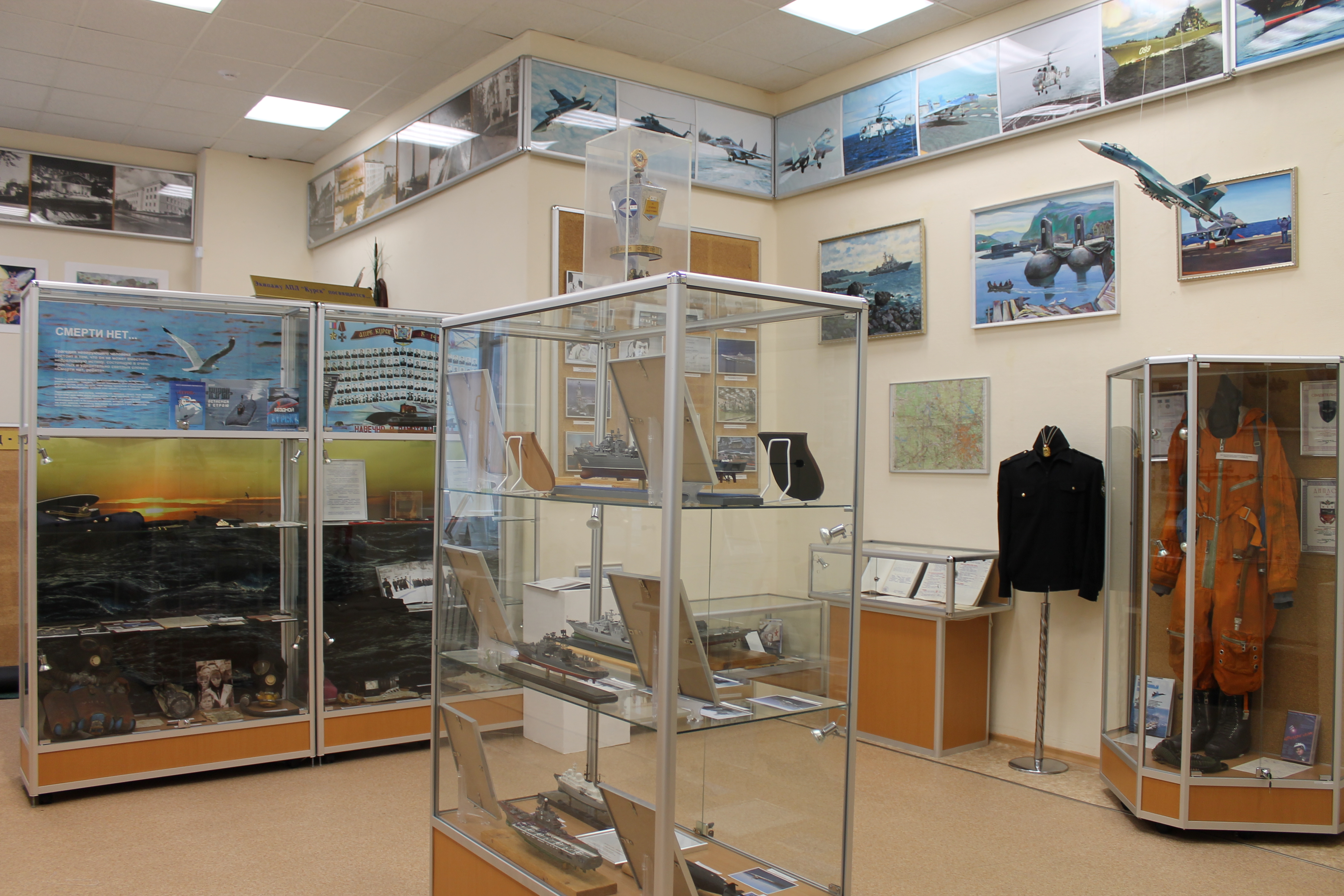 Основная экспозиция располагается в трех залах. Зал боевой славы рассказывает о далеком прошлом поселка Ваенга, об истории создания Северной военной флотилии.