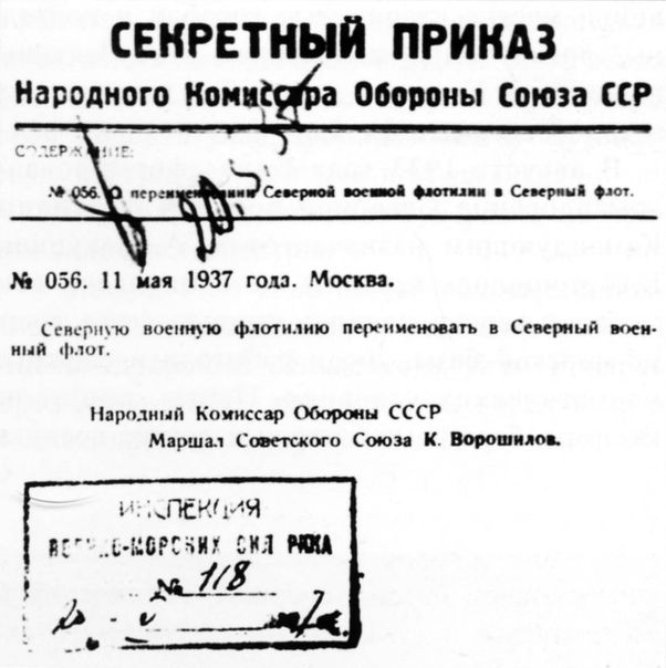 В апреле 1933 года Советское Правительство, понимая важность Северного морского театра для обороны морских границ государства, приняло постановление о переводе части кораблей с Балтийского моря на Север - с целью создания в этом районе регулярного объединения Военно-Морских Сил. 1 июня 1933 года был издан циркуляр Начальника штаба РККА о формировании Северной военной флотилии. 11 мая 1937 года флотилия была преобразована в Северный флот.