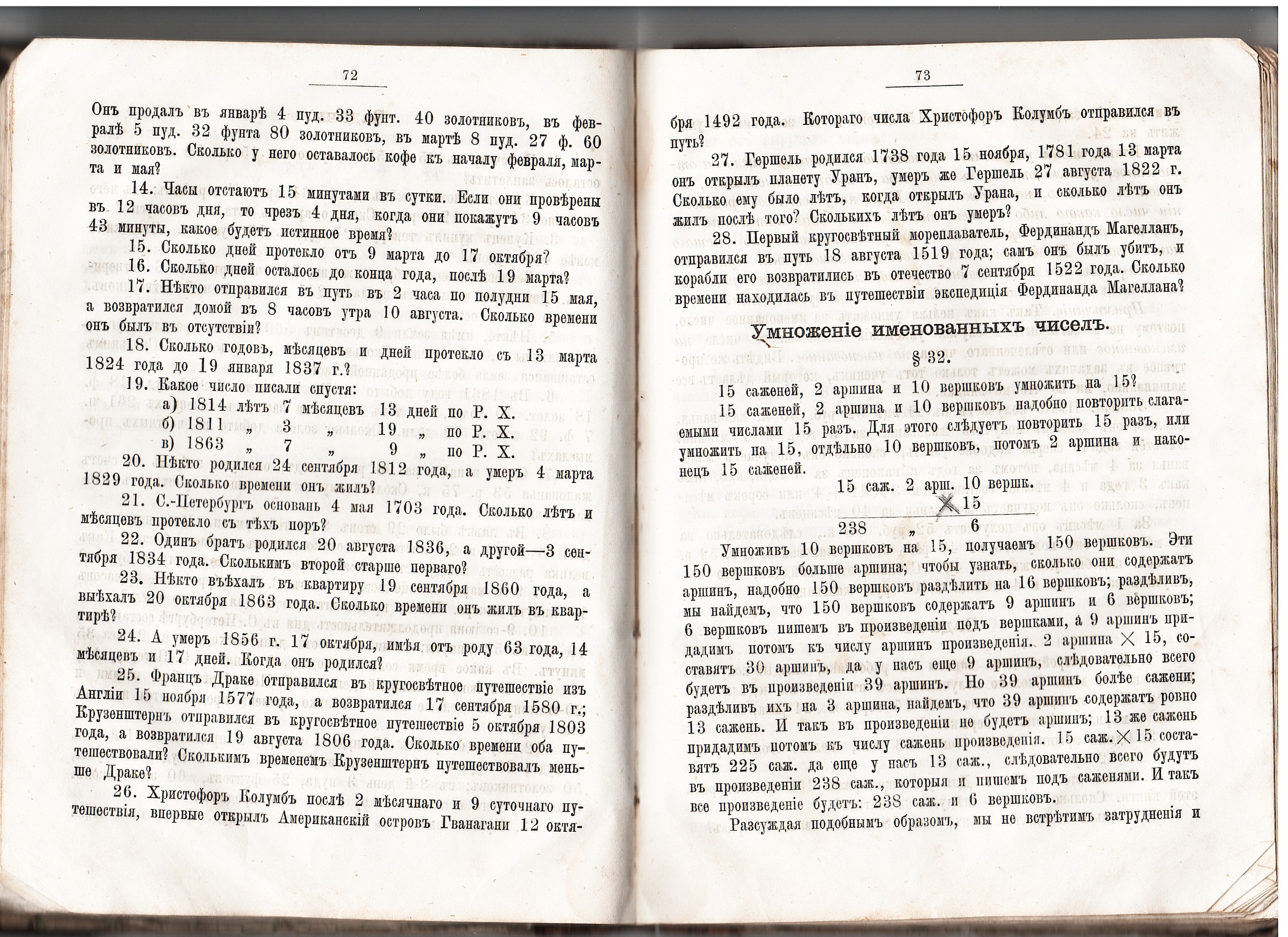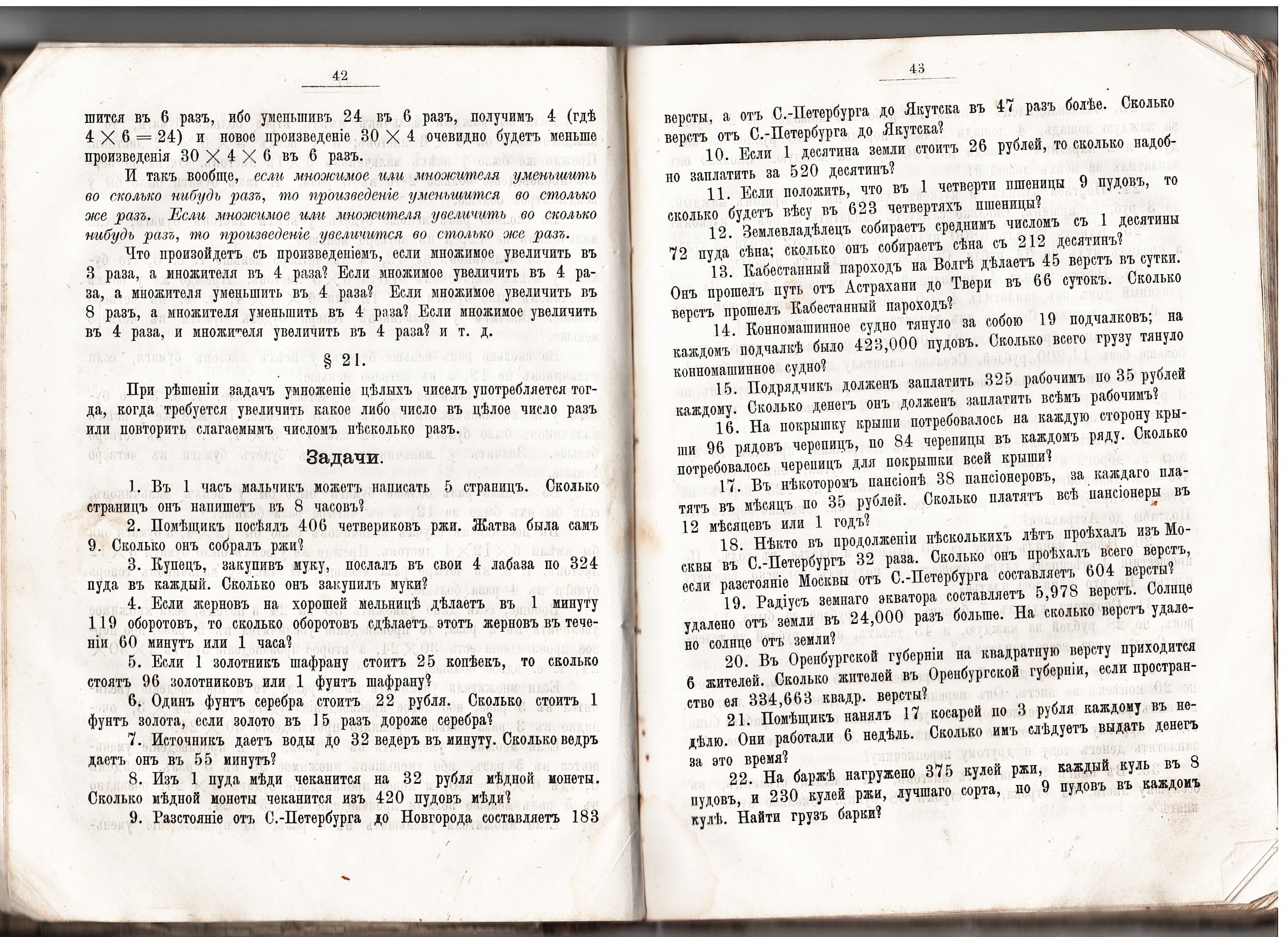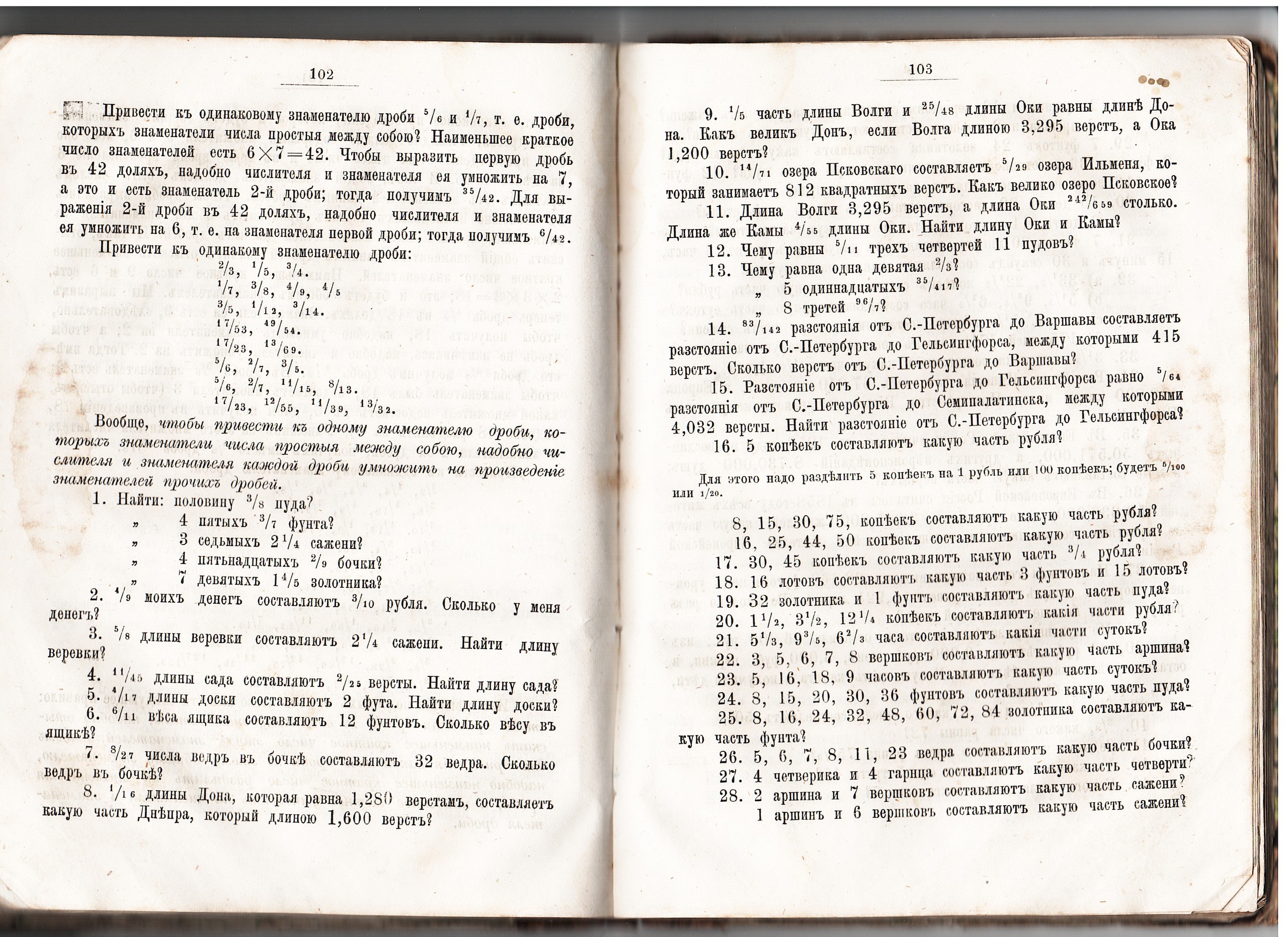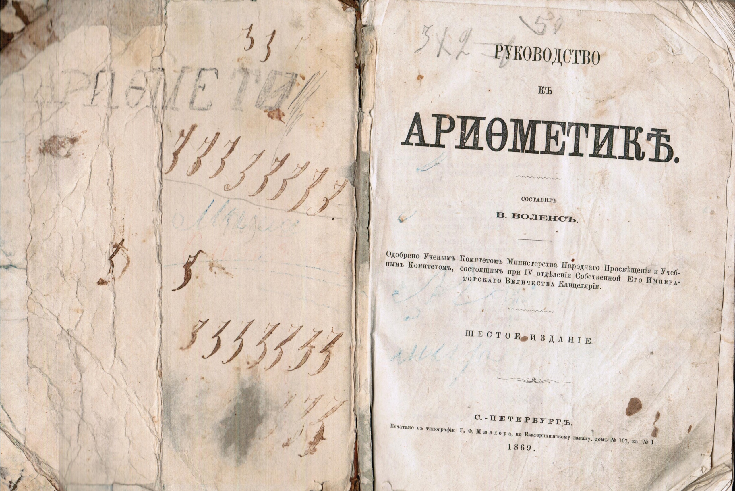 В фондах МБУК СМВК хранится "Руководство къ АРИФМЕТИКЪ" 1869 г. под редакцией В. Воленса. Мы предлагаем вашему вниманию ВИРТУАЛЬНУЮ ВЫСТАВКУ ОДНОГО ПРЕДМЕТА, посвящённую Дню знаний. Давайте вместе полистаем этот учебник, которому без малого 153 года! Он интересен не только с точки зрения обучения математике. Тексты задач и примеров со страниц этой старой книги перенесут нас в обыденную жизнь второй половины 19-го века. Вот такое математическое путешествие во времени! А заодно можно и попробовать решить задачки из прошлого!