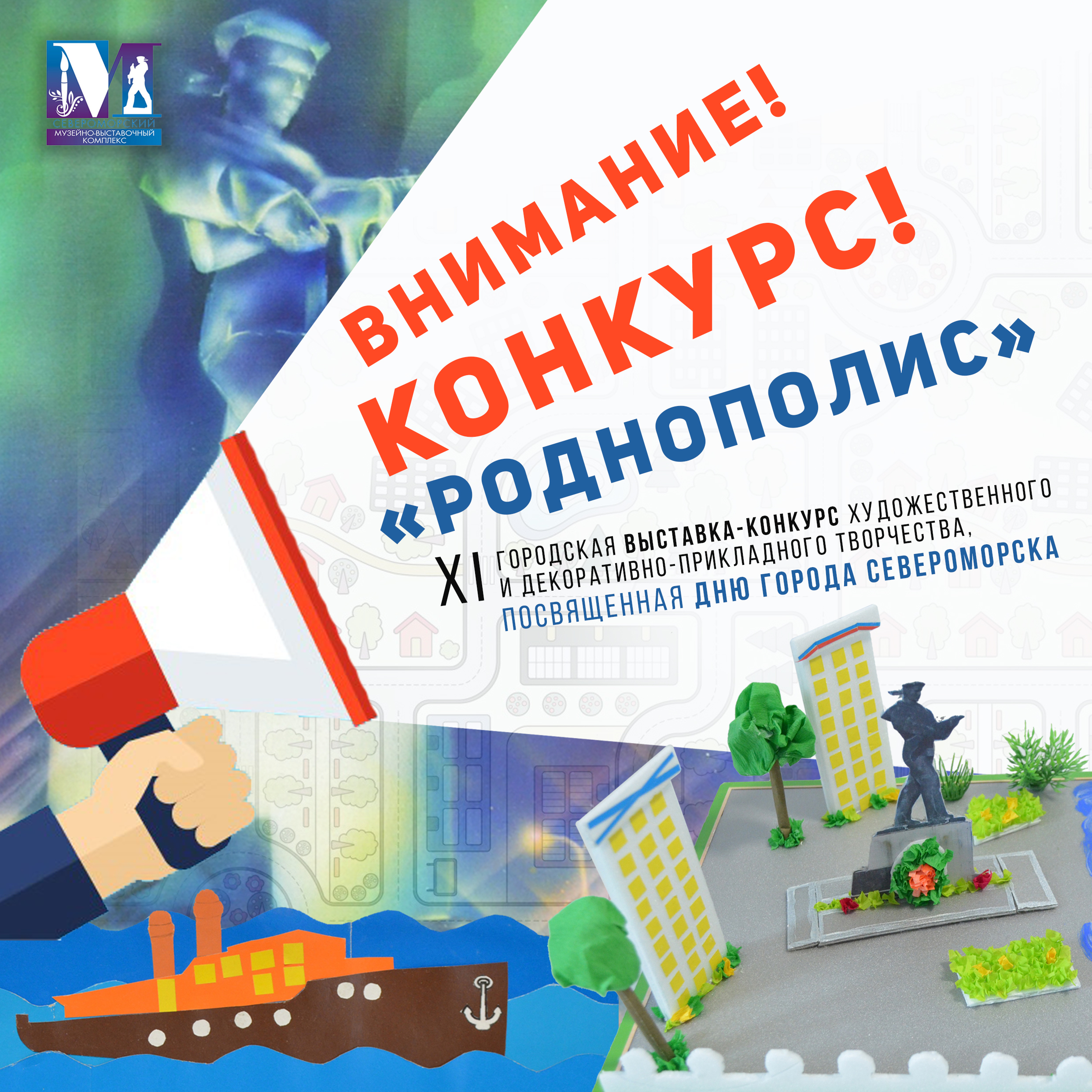 Отдел прикладного творчества и народных ремёсел Североморского музейно-выставочного комплекса приглашает принять участие в ХI городской выставке-конкурсе художественного и декоративно-прикладного творчества «РОДНОПОЛИС», посвящённой Дню города Североморска.