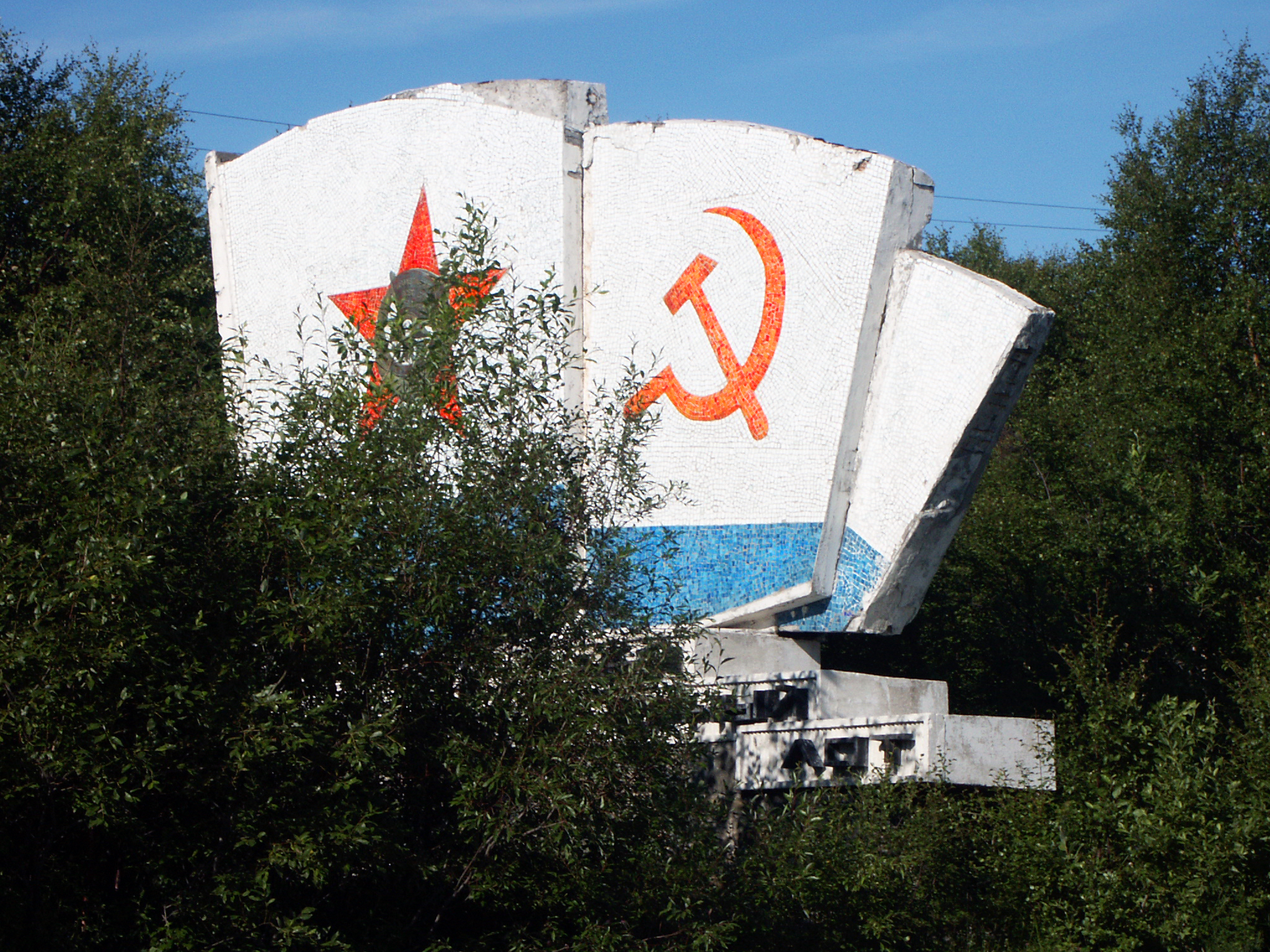 Декоративный знак-символ выполнен в виде военно-морского флага с надписью на постаменте «КРАСНОЗАМЁННЫЙ СЕВЕРНЫЙ ФЛОТ».
