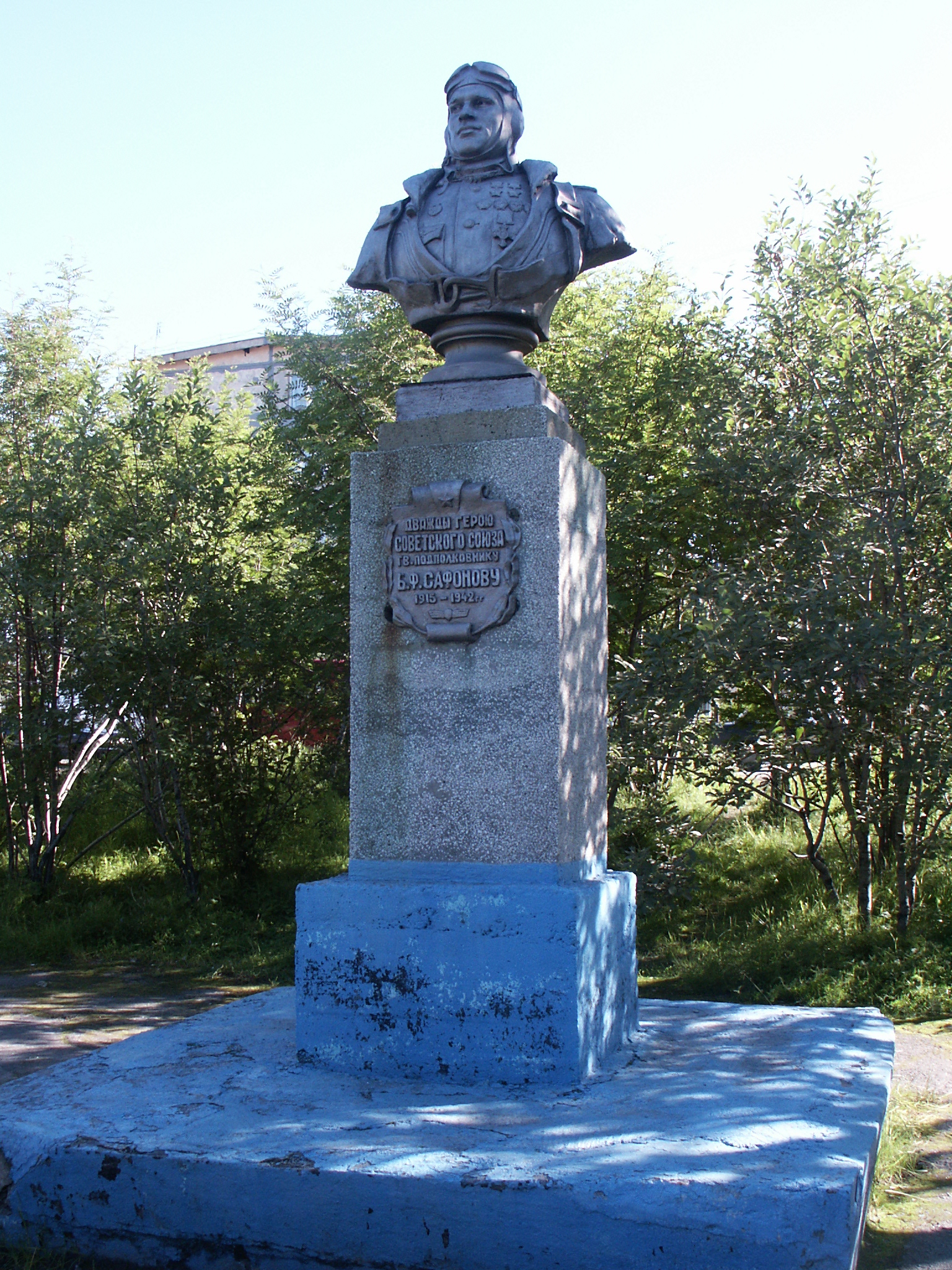 Бюст увековечивает память Дважды Героя Советского Союза, героического лётчика Бориса Феоктостовича Сафонова. Он первым из морских лётчиков сбил фашистский самолёт 24 июня 1941 года. Лучший советский лётчик времён начала Великой Отечественной войны (воевал с 22.06.1941 до 30.05.1942 года).