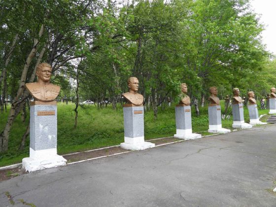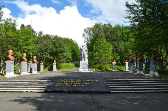Среди авиаторов-североморцев 53 Героя Советского Союза. На Аллее увековечены имена командиров авиачастей, эскадрилий, летчиков, штурманов, стрелков-радистов. 53 бюста – 53 подвига во имя славы Родины. В 1984 году был установлен 54-й бюст – пионеру освоения космоса – Ю.А. Гагарину, который 1957 году проходил службу в Заполярье.
