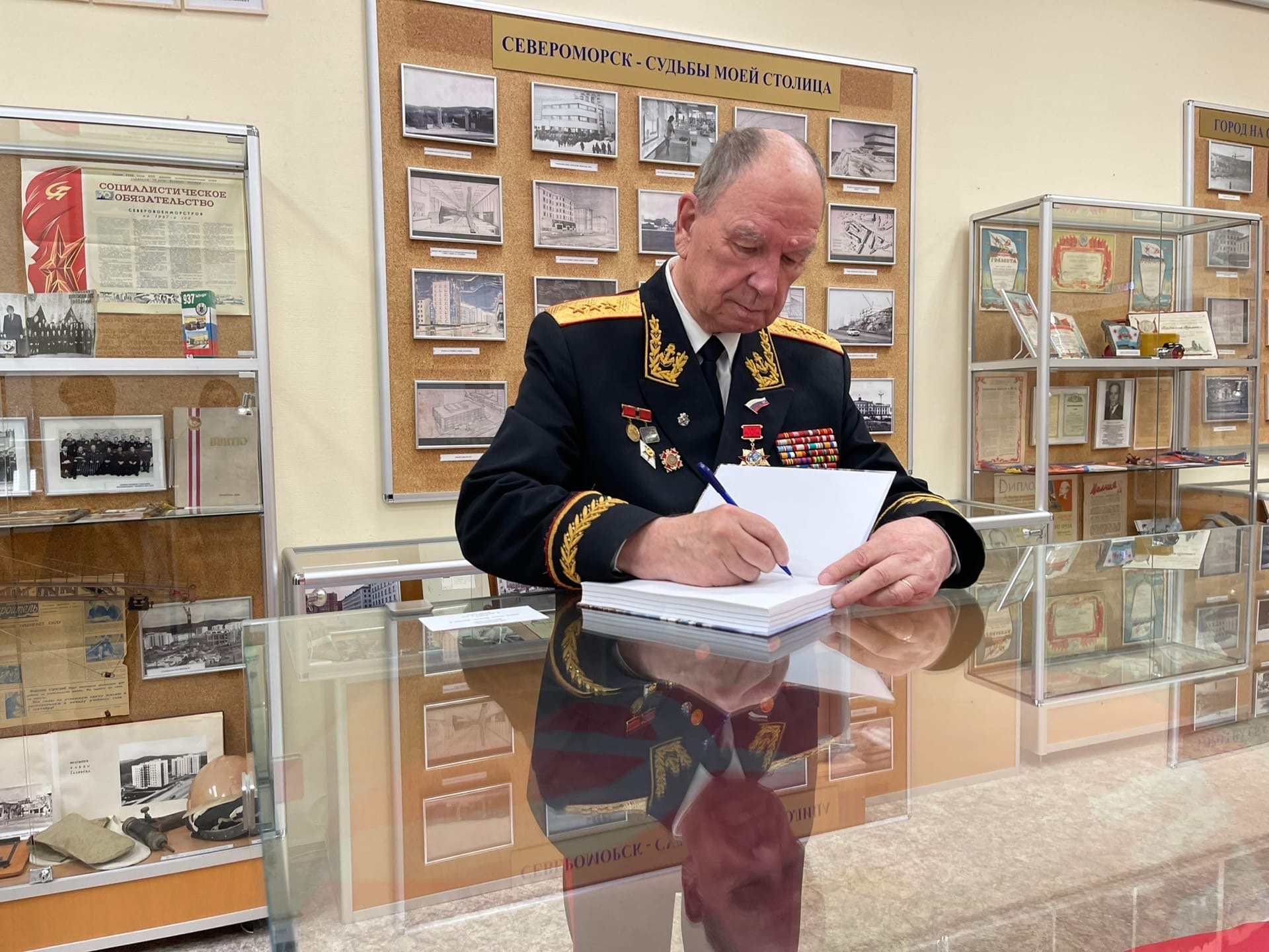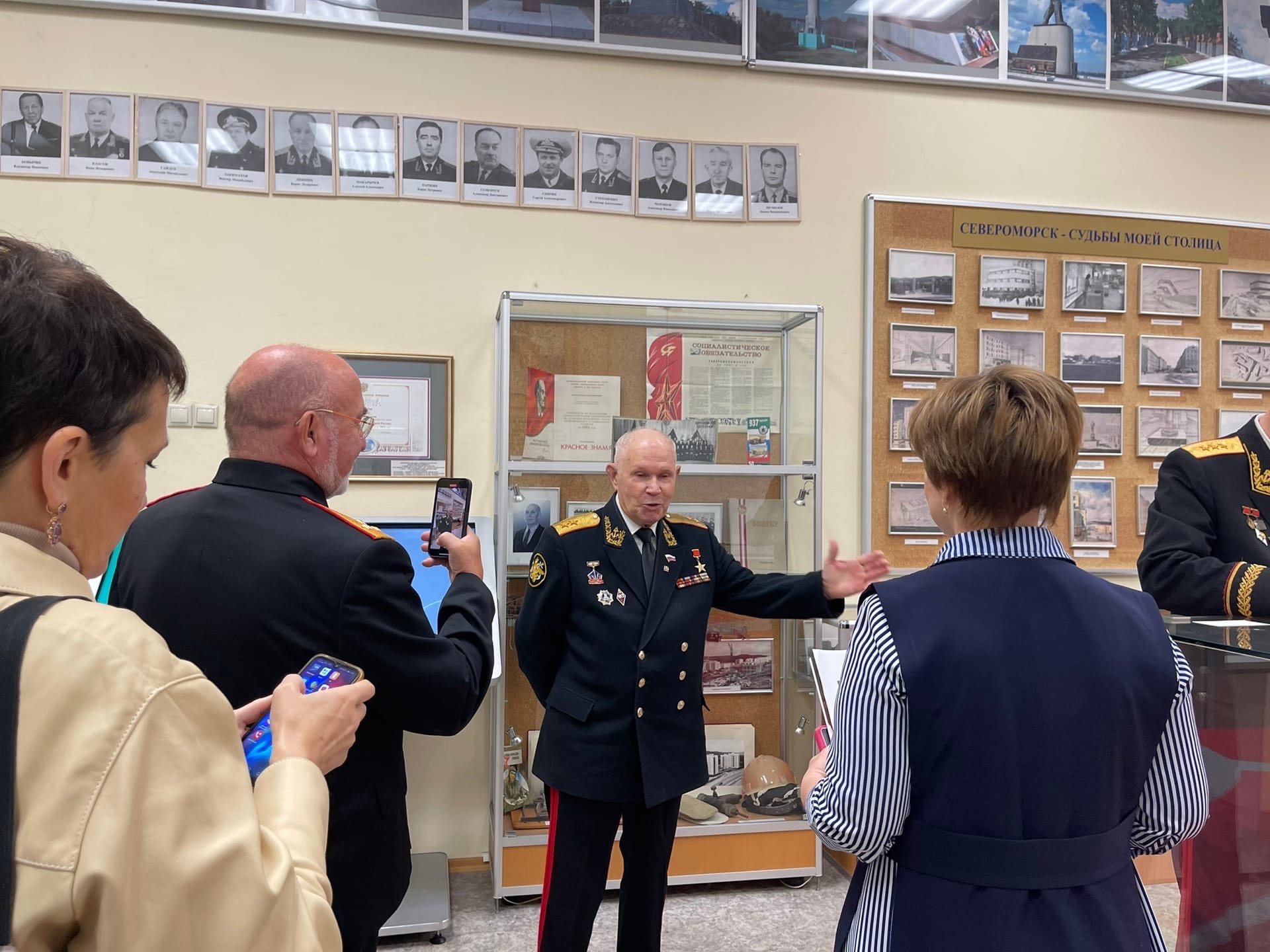 Сегодня, спустя год, гости посетили нас снова, познакомились в переэкспозицией залов Музея истории города и флота, обновлённой концепцией и витринами, посвящёнными истории СВМС. Наши гости остались под большим впечатлением от изменений, внесли свои пожелания для информационного наполнения интерактивного стола, Шумиловым Леонидом Вениаминовичем была подарена книга с воспоминаниями о застройке архипелага Новая Земля.