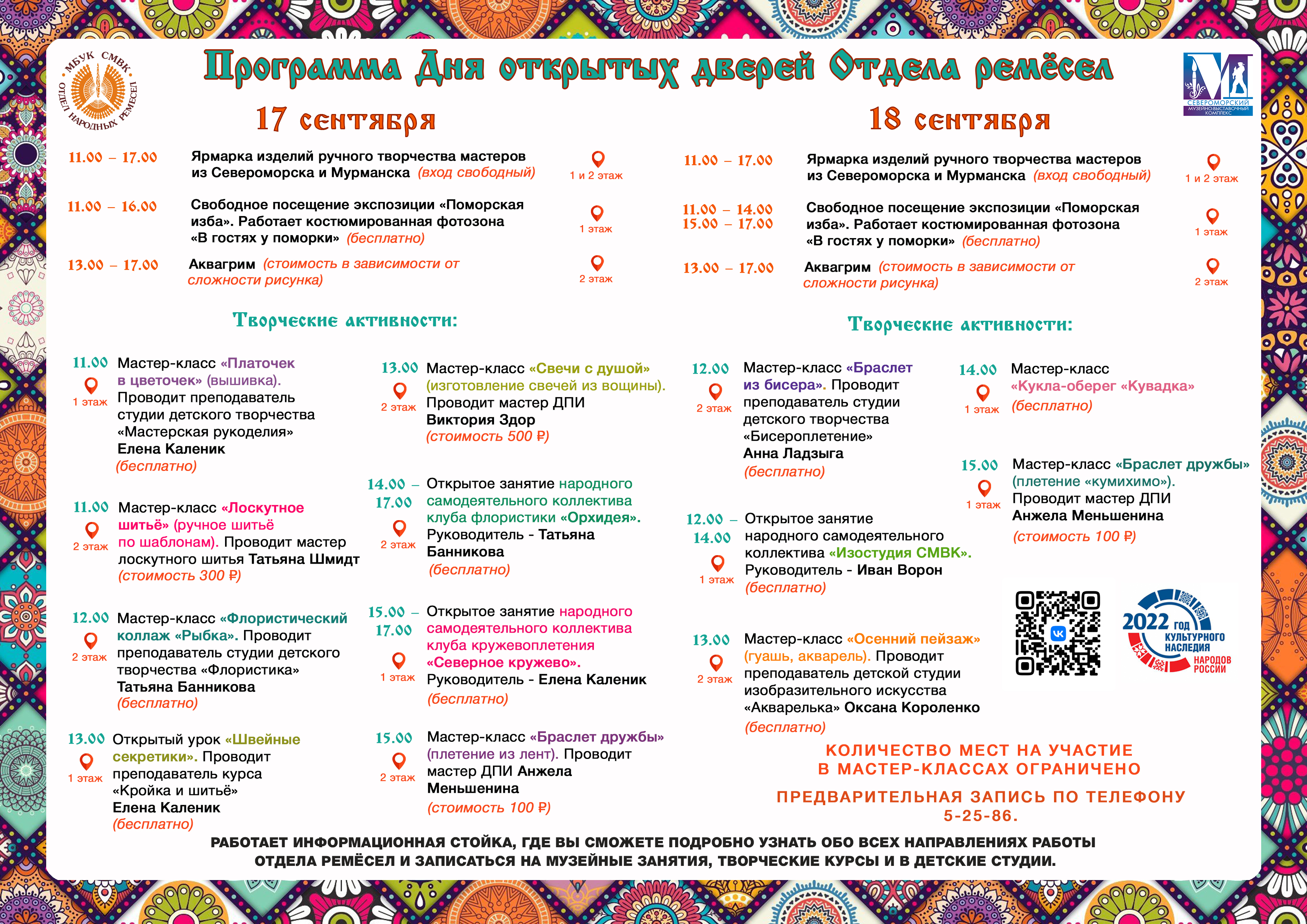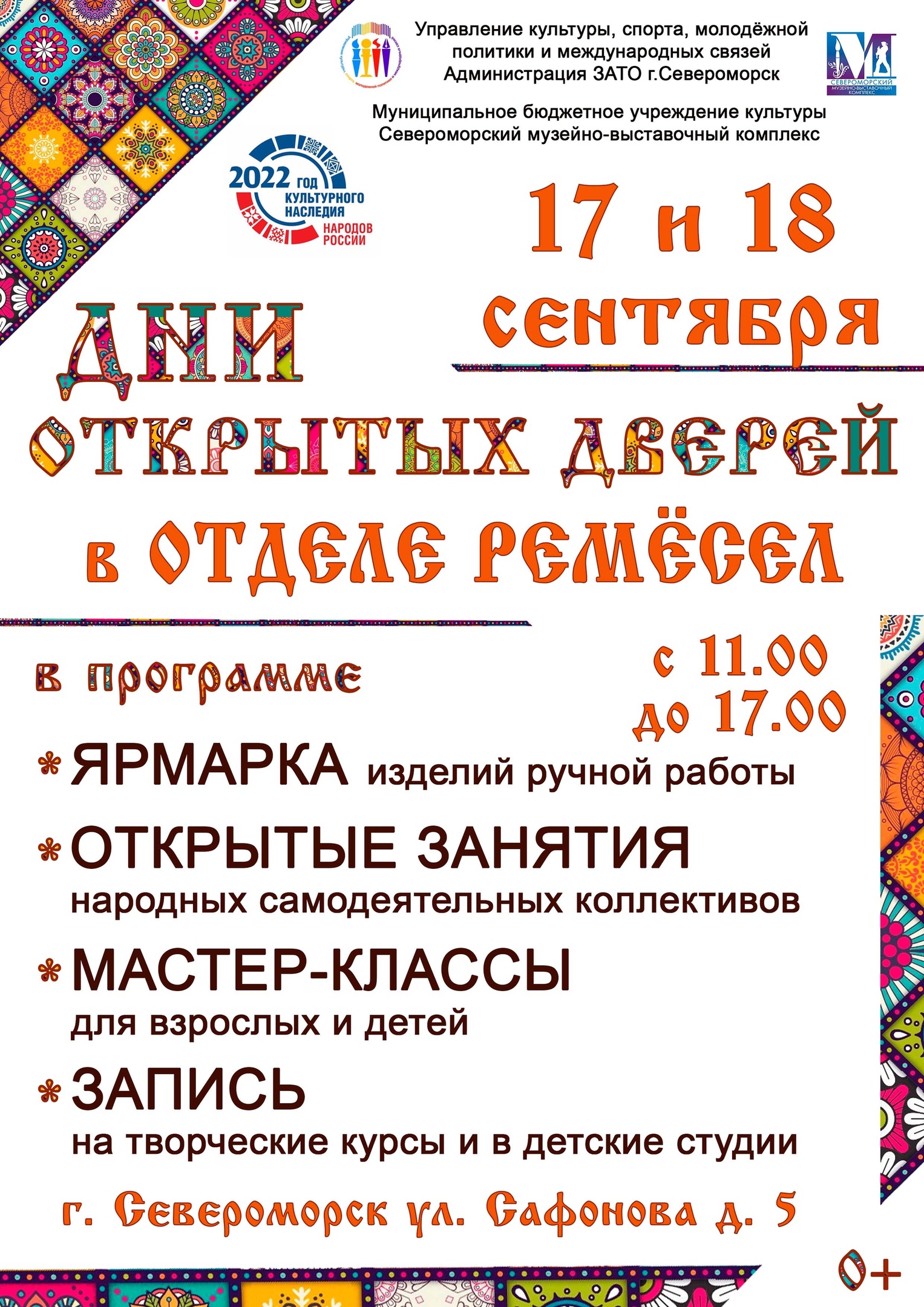 17 и 18 сентября − Дни открытых дверей в Отделе ремёсел