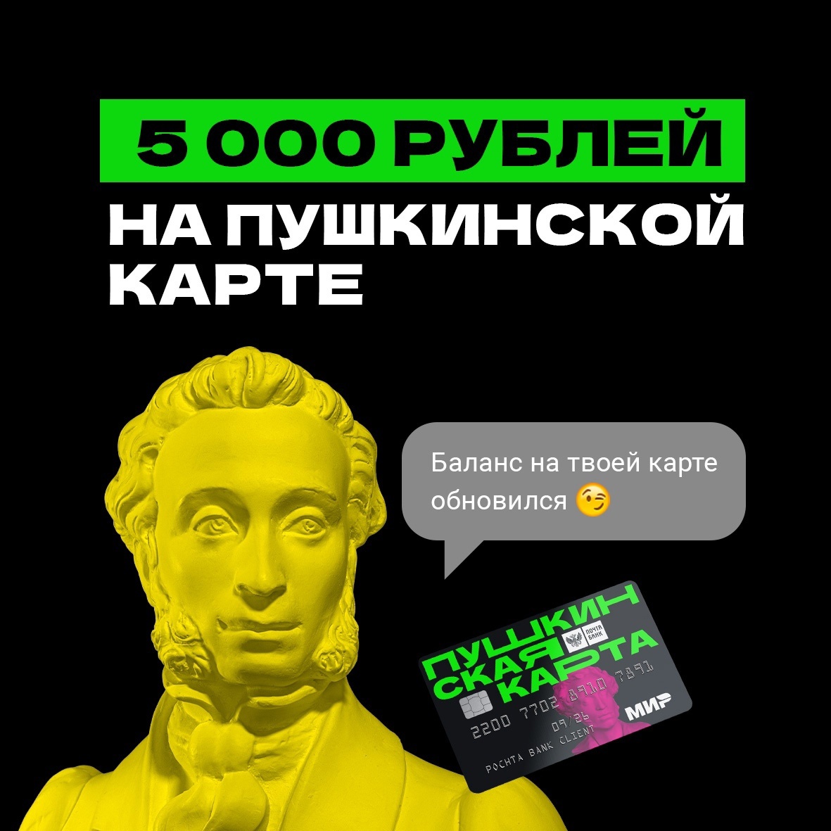 Проверь баланс! На твою Пушкинскую карту снова упало 5 000 рублей!