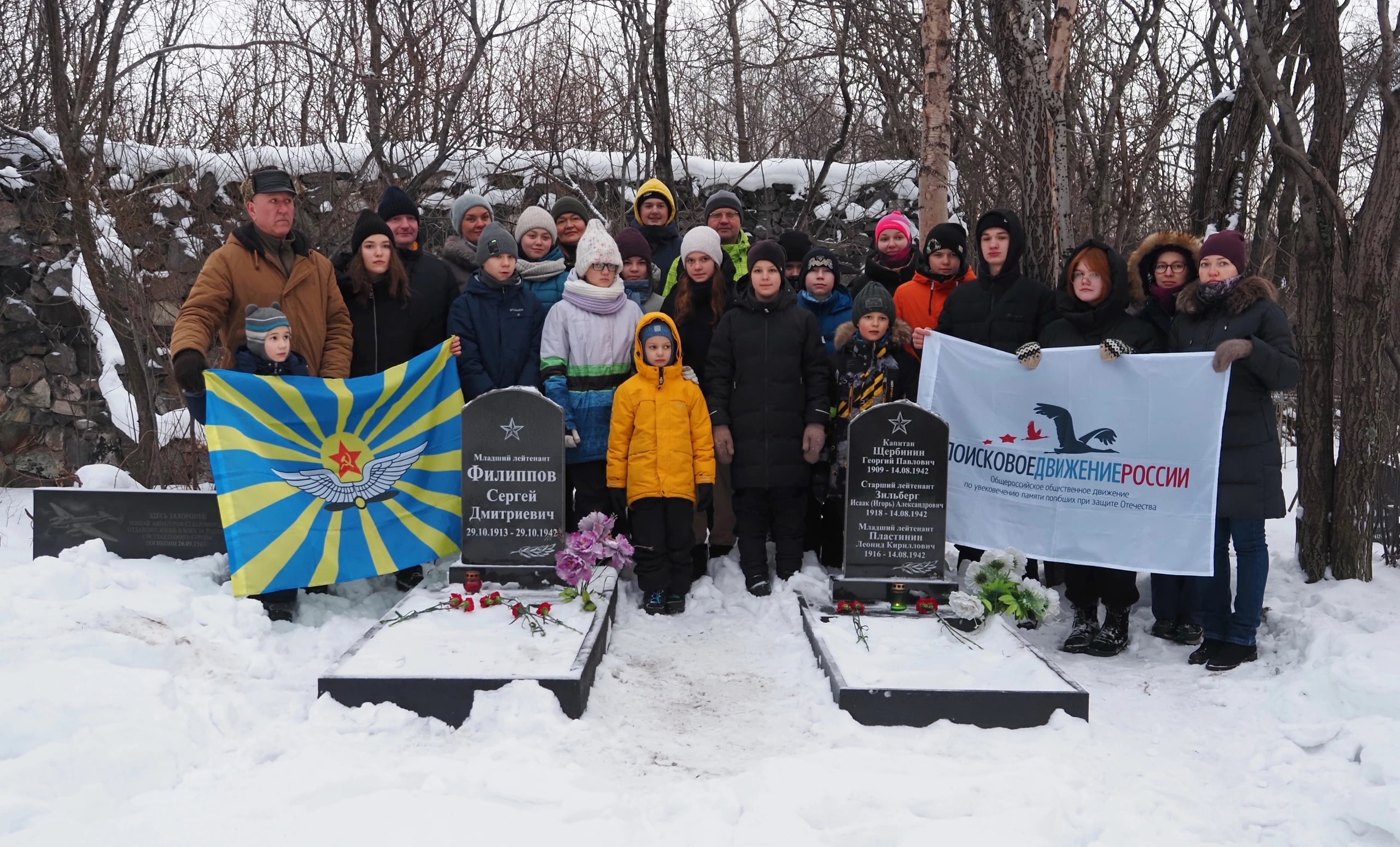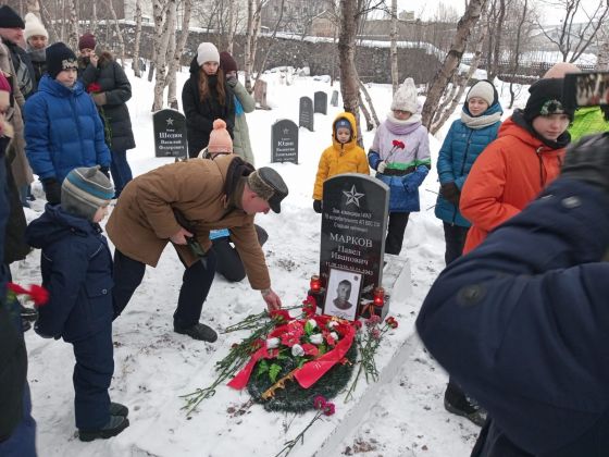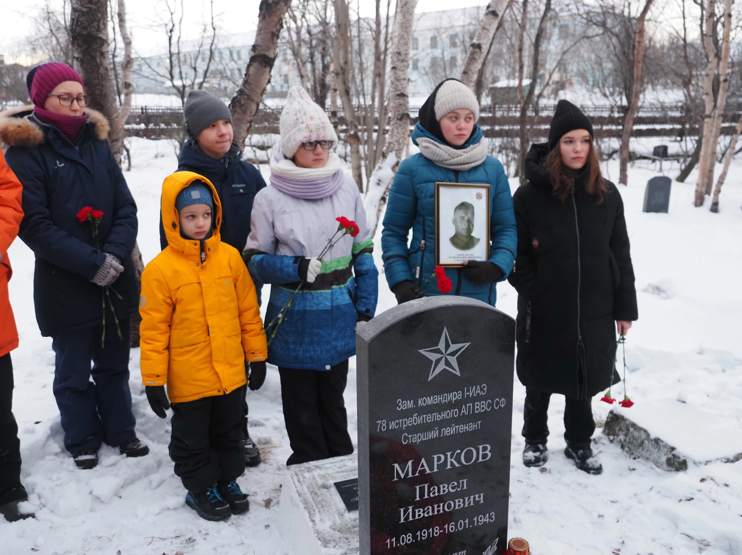 Североморский поисковый отряд «Ваенга», Североморский Городской Школьный Поисковый Отряд, поисковая группа МБОУ СОШ №11 почтили памяти летчика на Городском мемориальном кладбище.