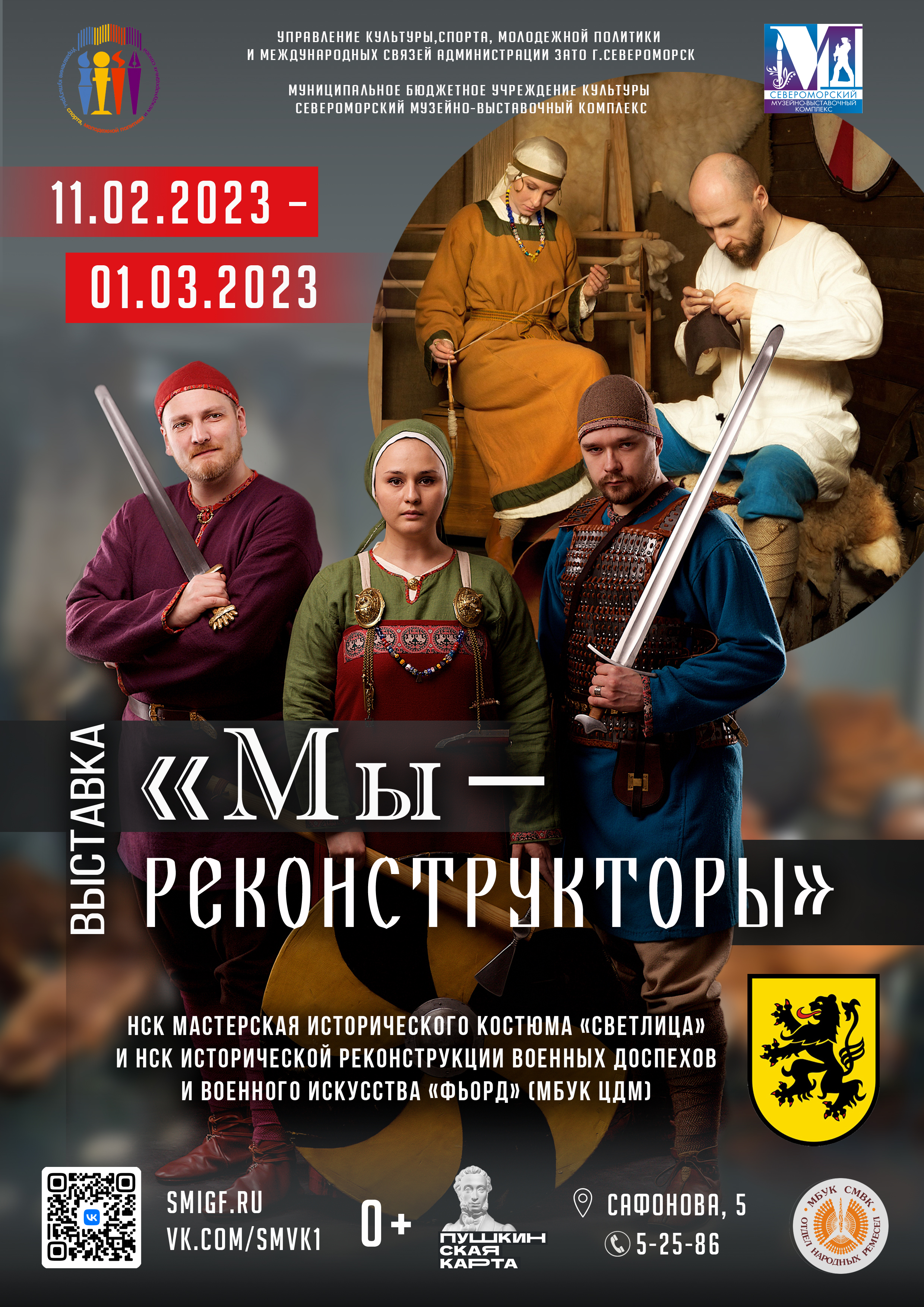 Уже в эту субботу 11 февраля в 13.00 состоится открытие уникальной выставки народных самодеятельных коллективов мастерской исторического костюма «Светлица» и исторической реконструкции военных доспехов и военного искусства «Фьорд» Центр досуга молодежи г.Североморск