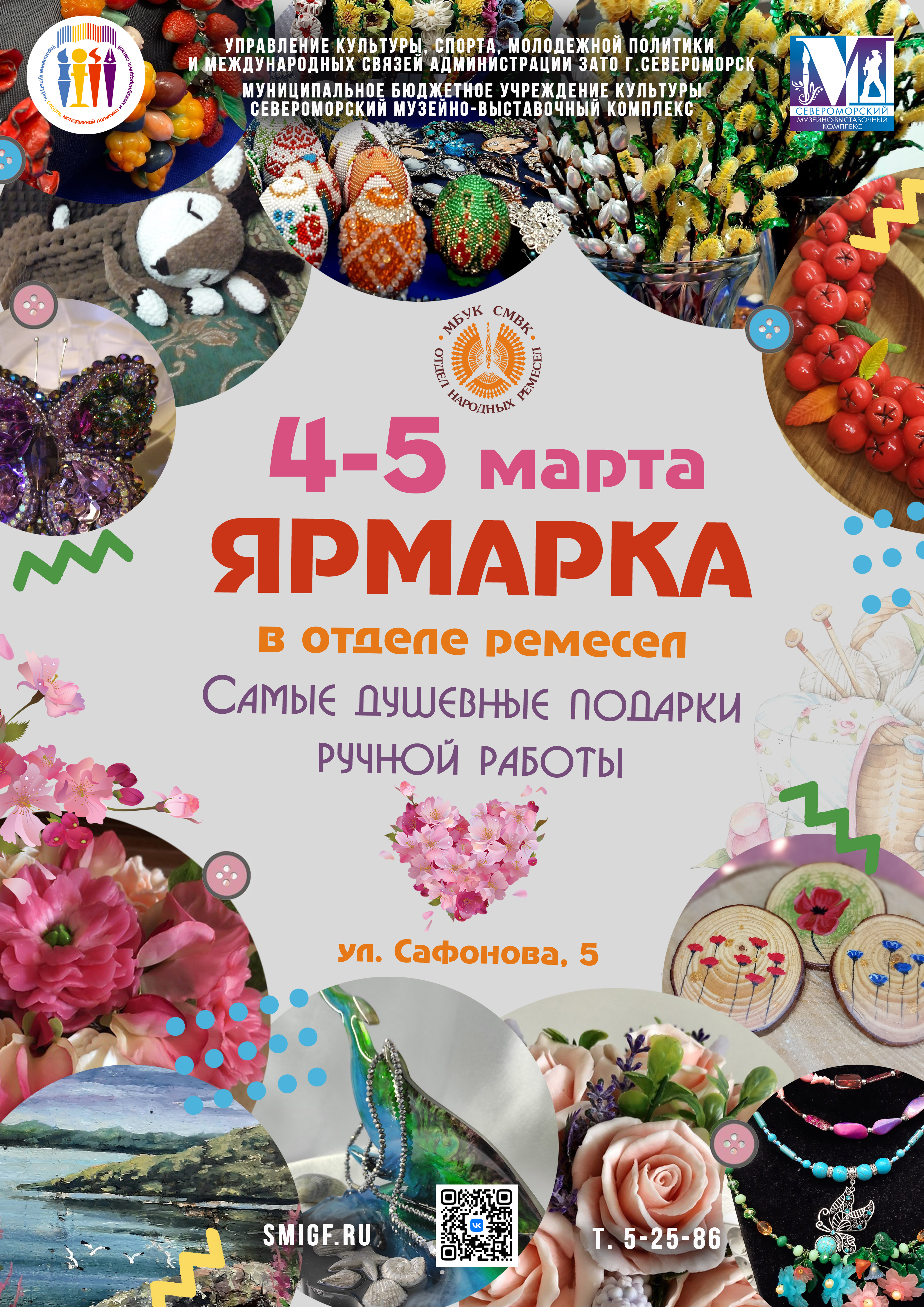 4 и 5 марта с 11.00 до 17.00 в Отделе прикладного творчества и народных ремёсел Североморского Музейно-выставочного комплекса (г. Североморск ул. Сафонова д. 5) состоится выставка-ярмарка изделий ручной работы и картин североморских художников.