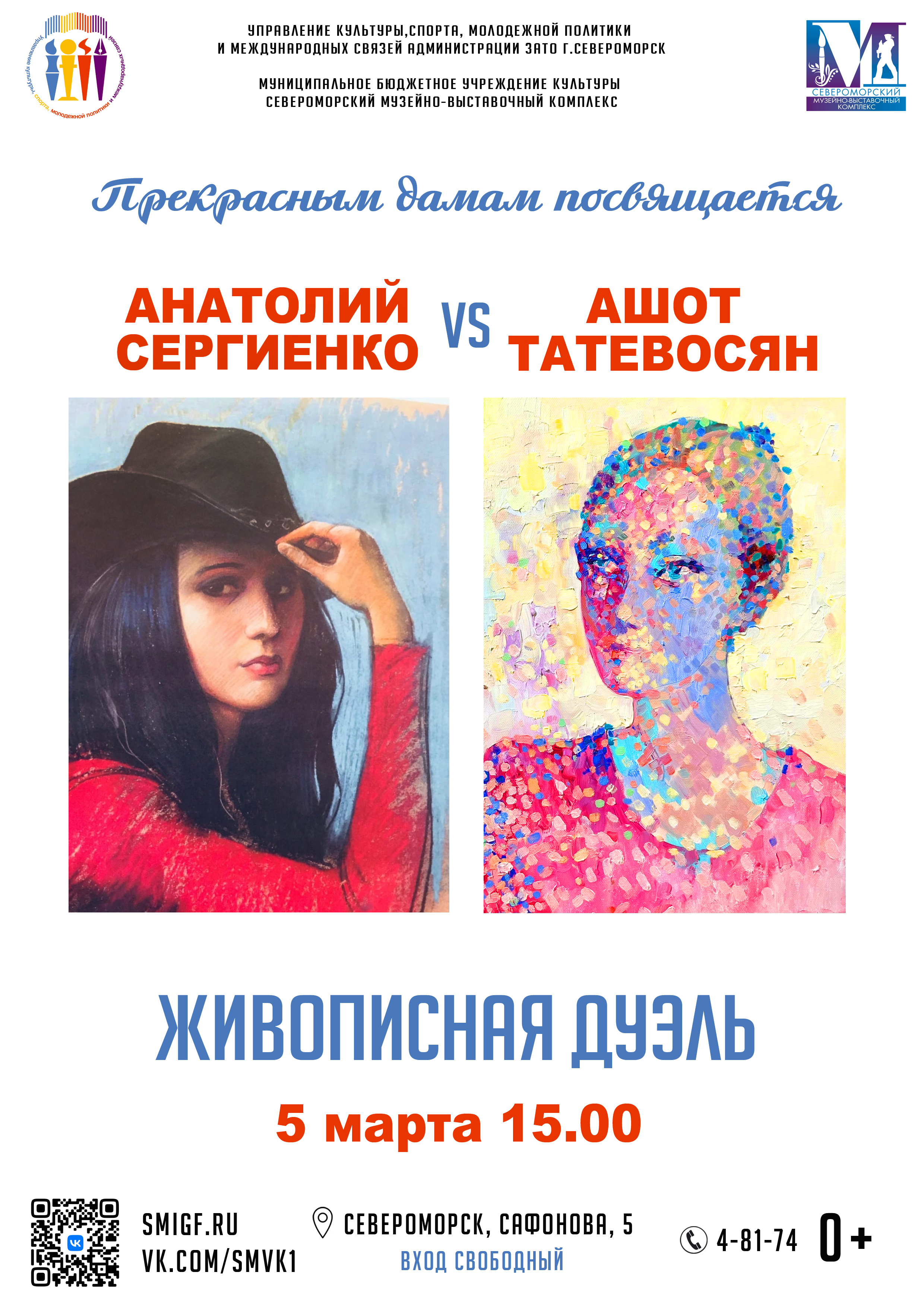 5 марта в 15:00 Североморский музейно-выставочный комплекс приглашает всех ценителей изобразительного искусства на творческую дуэль известных художников Анатолия Сергиенко и Ашота Татевосяна!
