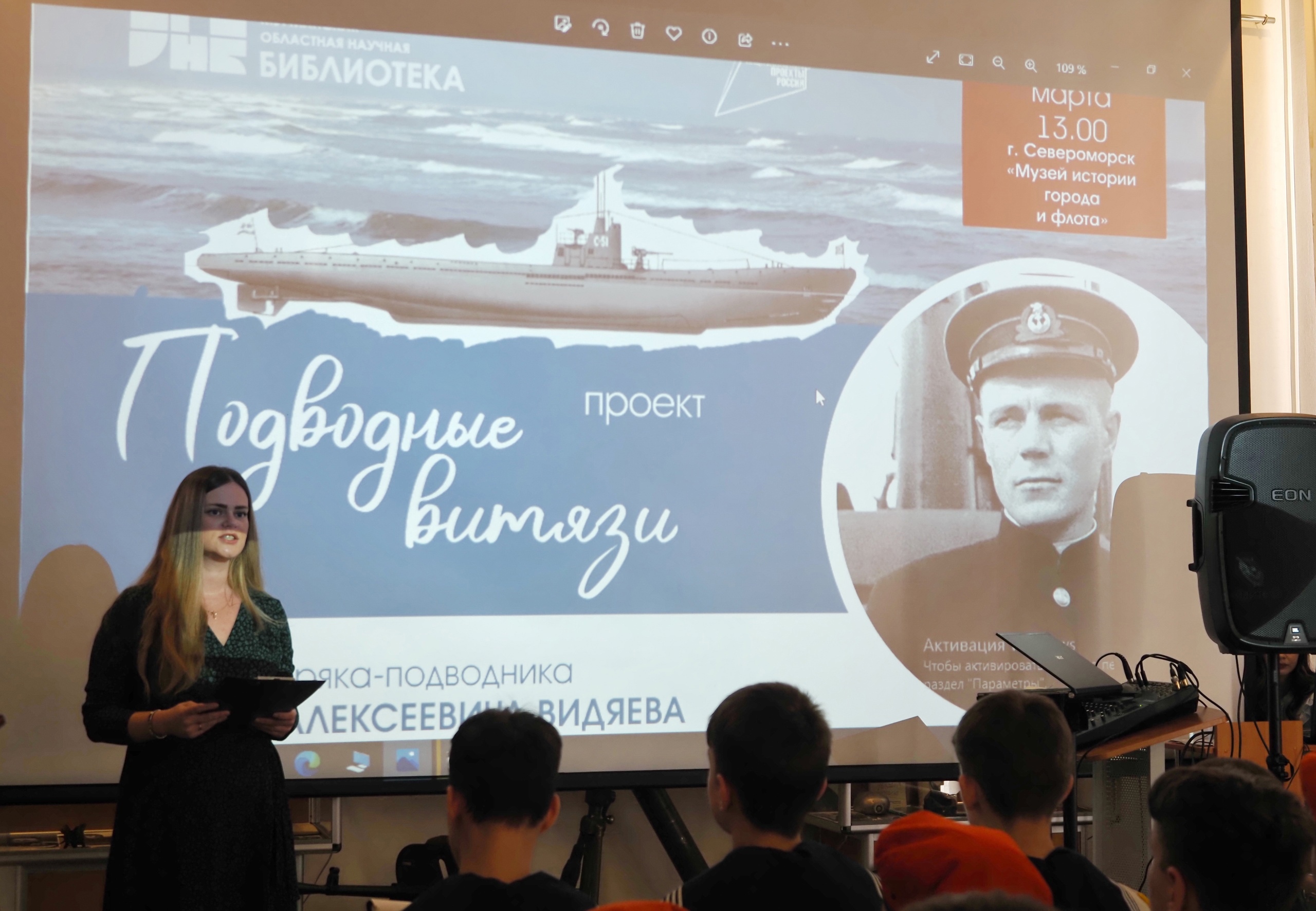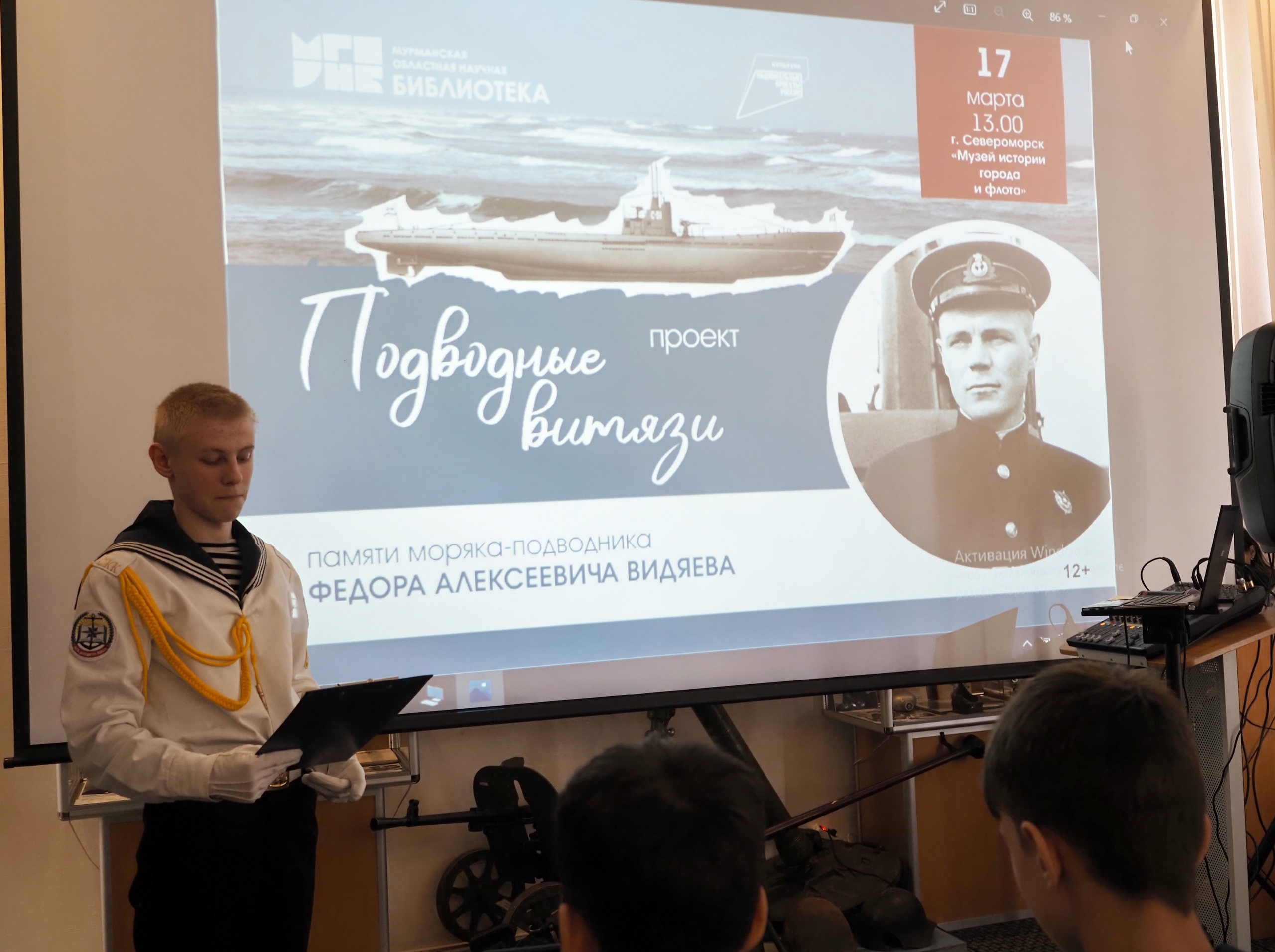 В преддверии Дня моряка-подводника в североморском Музее истории города и флота состоялась встреча в рамках проекта Мурманской областной научной библиотеки «Подводные витязи». В этот раз вместе с учащимися и юнармейцами Лицея №1 и североморскими кадетами мы вспоминали моряка-подводника Ф.А.Видяева.