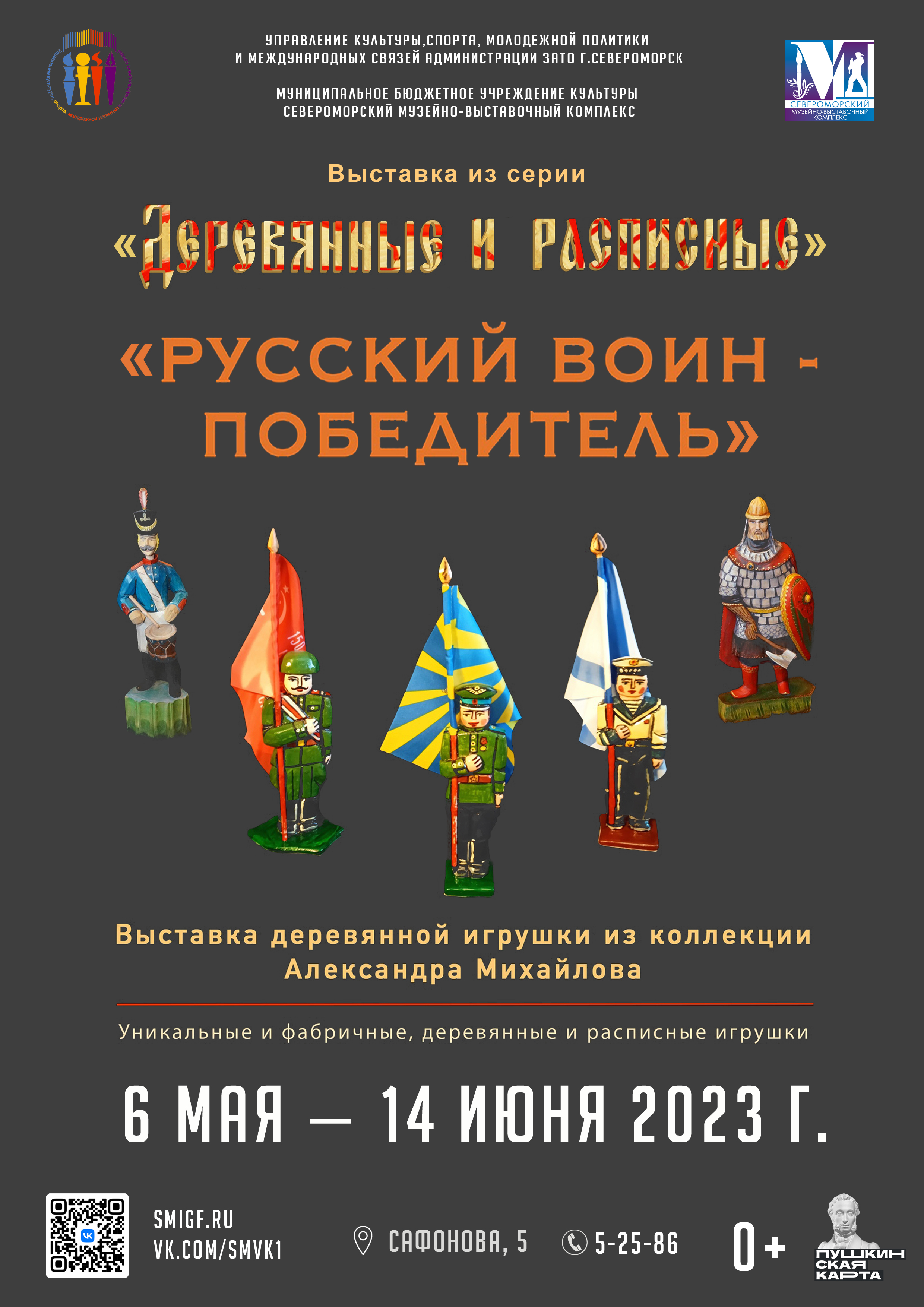 В Отделе ремёсел МБУК СМВК работает уникальная выставка деревянных игрушек из коллекции Александра Михайлова «Русский Воин-победитель».