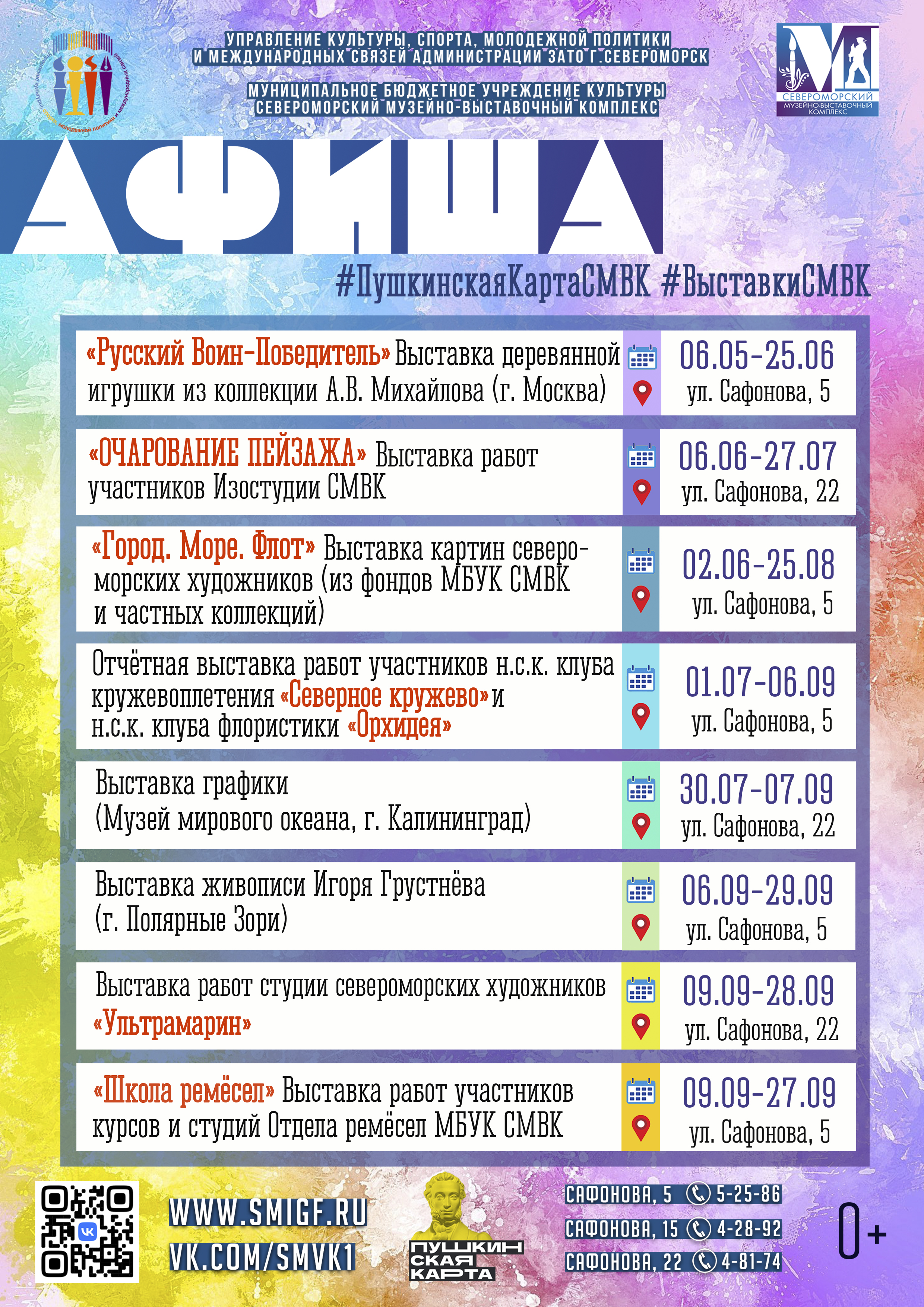 Предлагаем вашему вниманию афишу выставок в летний период в Североморском Музейно-выставочном комплексе.