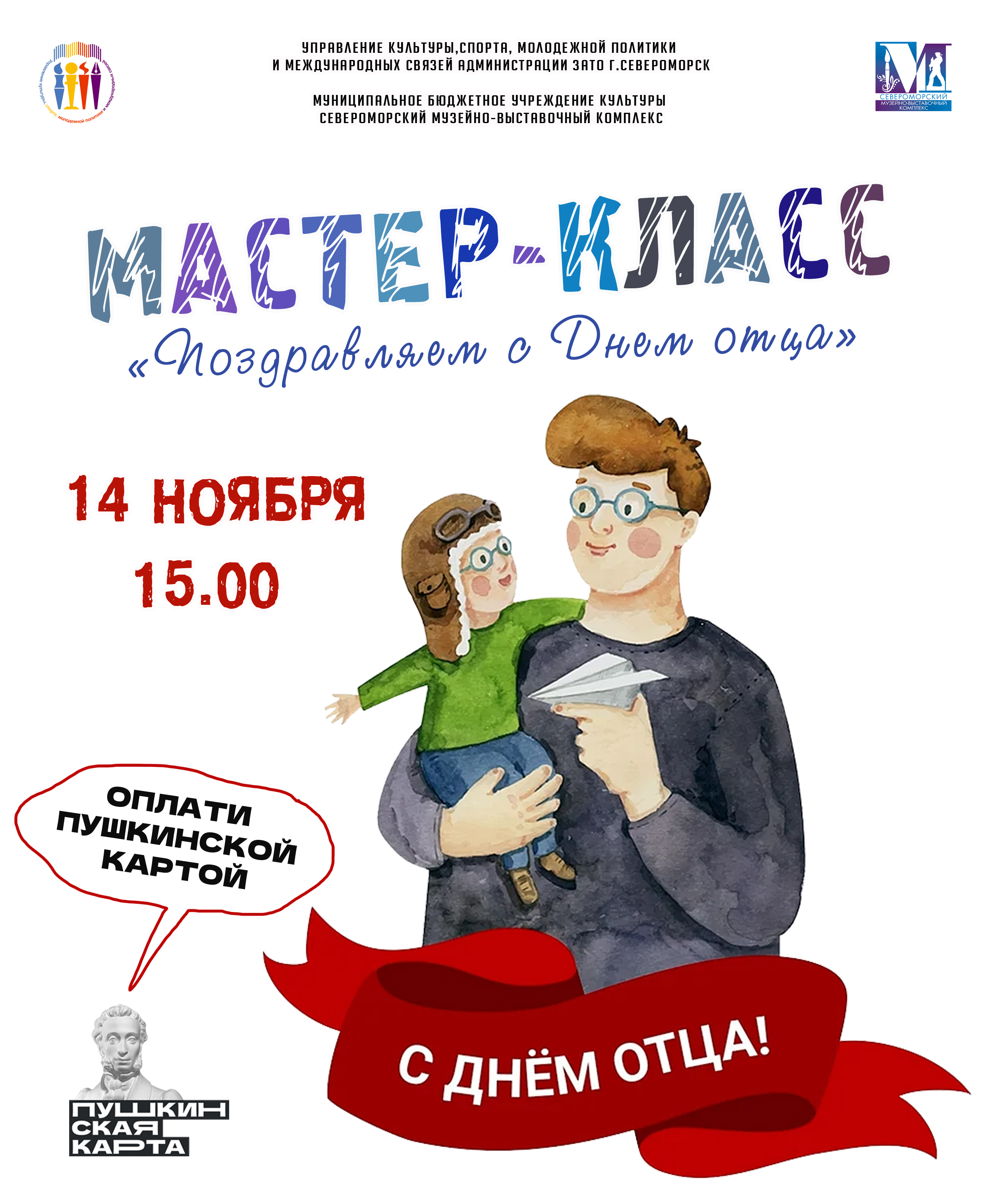 14 октября в 15.00 отдел прикладного творчества и народных ремесел Североморского Музейно-выставочного комплекса приглашает на мастер-класс по изготовлению открытки ко Дню отца.