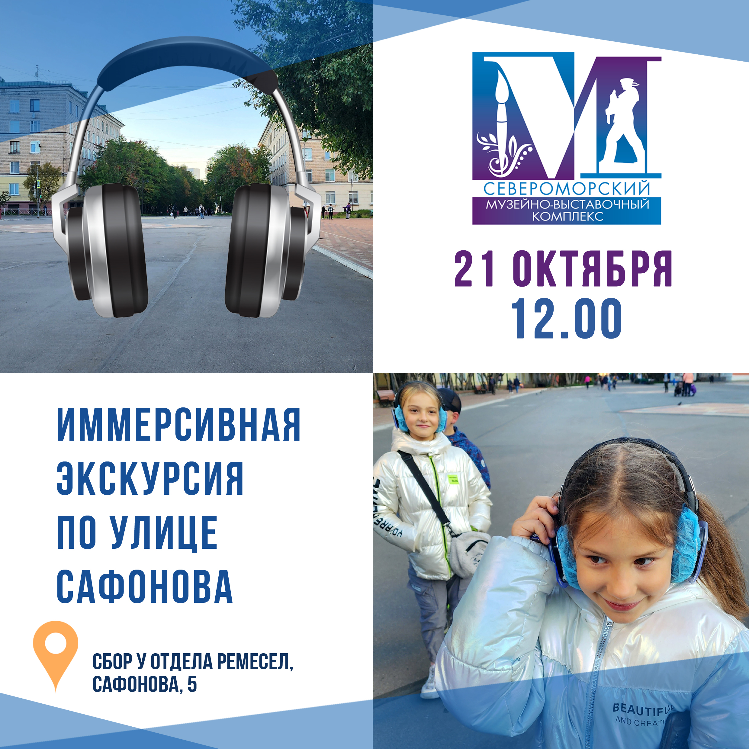 Записывайтесь на иммерсивную экскурсию по центральной улице флотской столицы – улице Сафонова, и вы, с помощью звуковых эффектов, воспоминаний старожилов и Почетных граждан города, окунетесь в атмосферу 50-60-х гг. прошлого столетия.