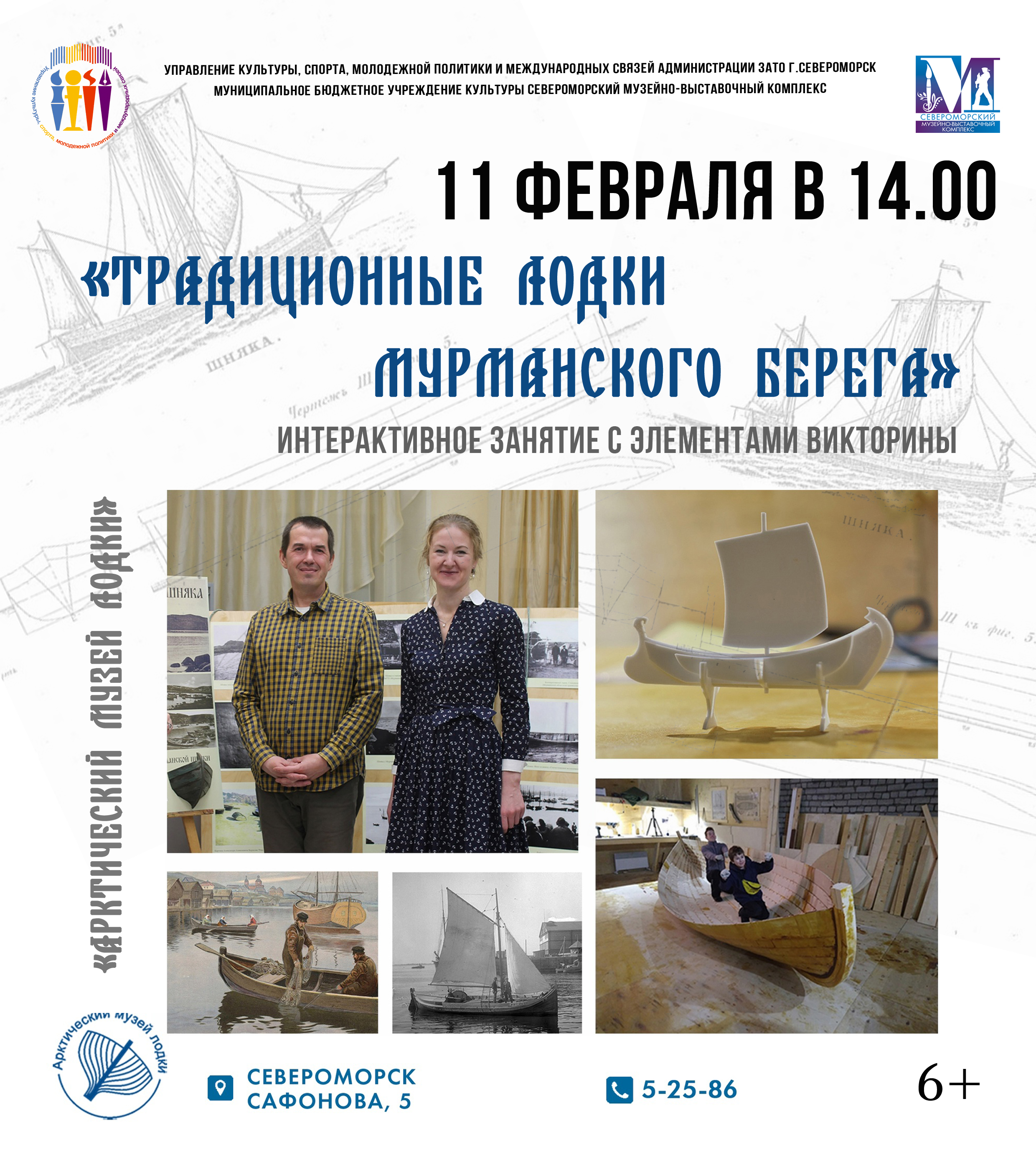 11 февраля 2024 года в 14.00 Отдел прикладного творчества и народных ремёсел (Сафонова, д.5) приглашает юных североморцев (6+) на интерактивное занятие с элементами викторины «Традиционные лодки Мурманского берега».
