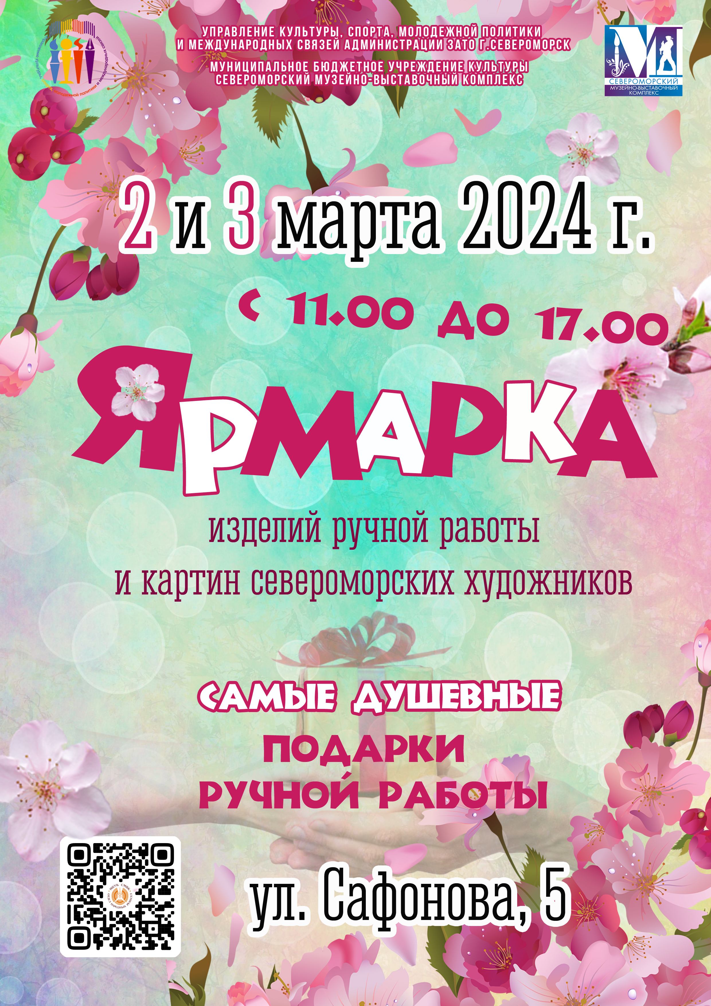 Североморские и мурманские мастера представят эксклюзивные подарки к празднику: авторские брошки и заколки из различных материалов (ленты, кожа, дерево, смола и др.), украшения из бисера и текстиля, оригинальные открытки, текстильные и вязаные игрушки и куклы, изделия в технике пэчворк (лоскутное шитьё), мыльные букеты, живописные картины и многое другое.