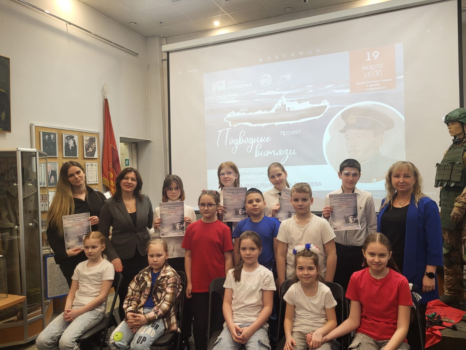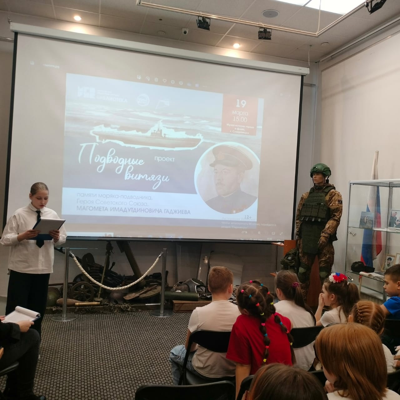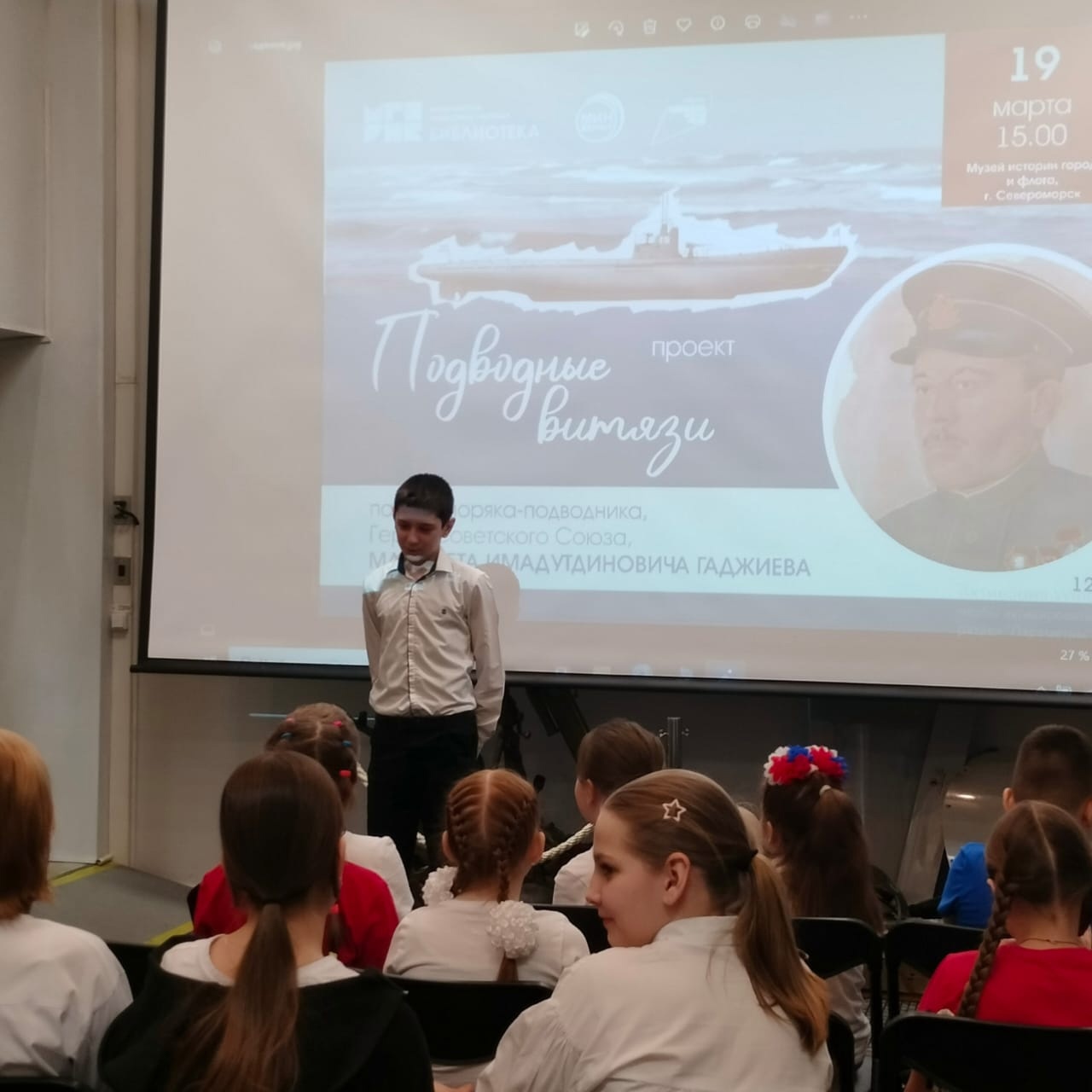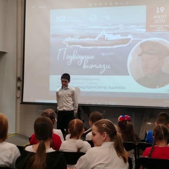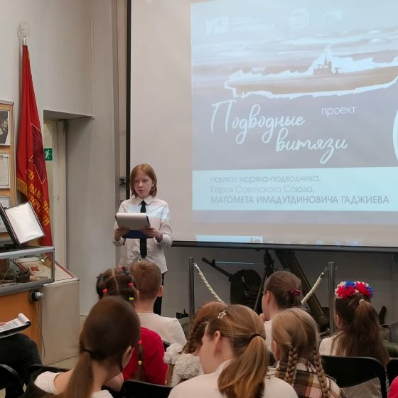 В день моряка-подводника в североморском Музее истории города и флота прошла встреча учащихся средней школы №1 им. Ивана Сивко со специалистом Мурманской областной научной библиотеки Анной Сергеевной Токаревой − автором проекта «Подводные витязи».