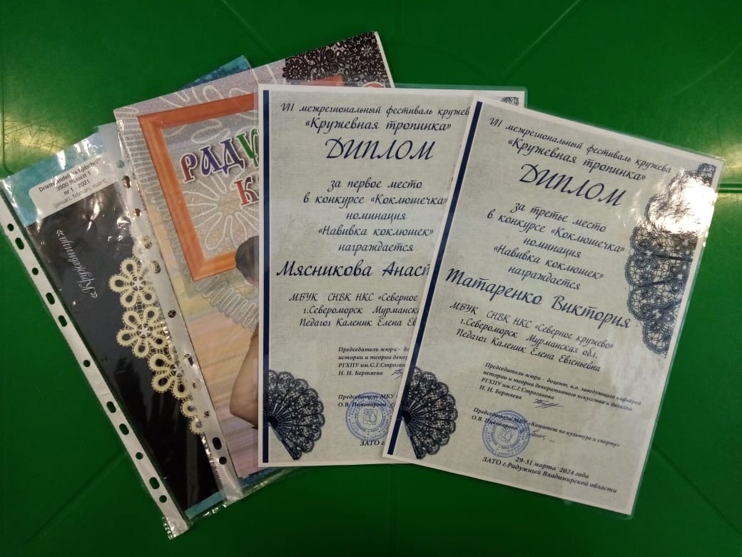 Участники североморского детского клуба кружевоплетения «Снежинка» стали победителями конкурса «Коклюшечка» в номинации «Навивка коклюшки»: