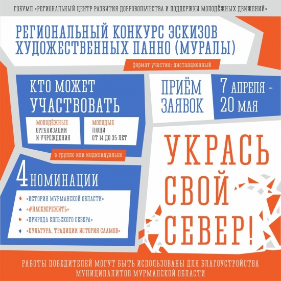 Реализовать свои идеи и предложить творческие проекты могут молодые люди в возрасте от 14 до 35 лет, проживающие на территории Мурманской области.