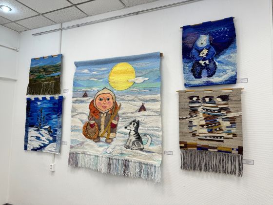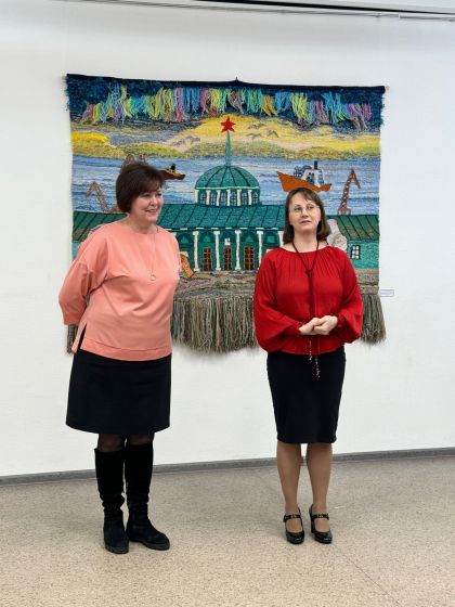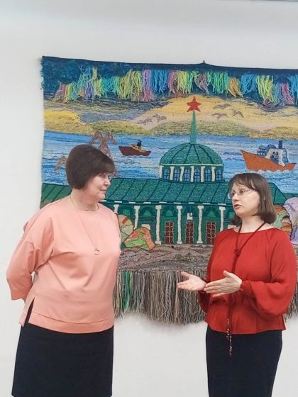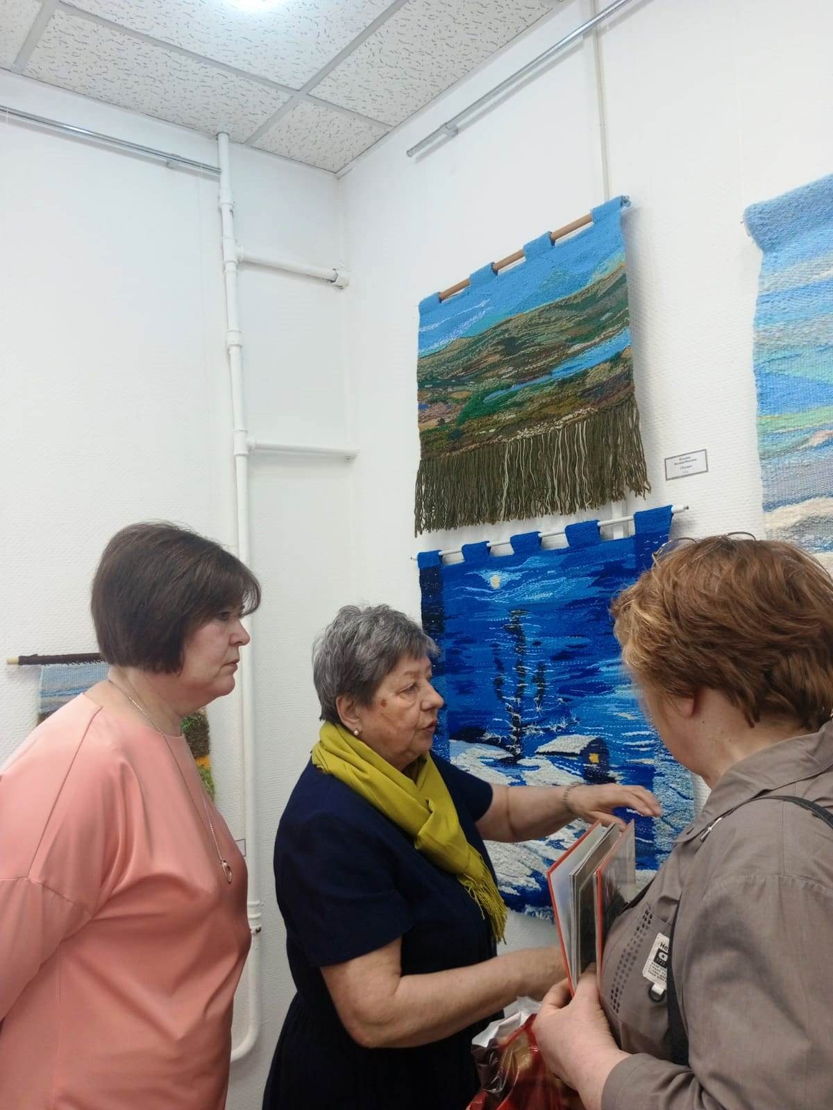 Участники народного самодеятельного коллектива клуба "Гобелен" из г. Мурманска представили свои произведения в технике ручного ткачества. За 30 лет существования коллектива мастерицы прошли долгий путь от робкого знакомства с первыми переплетениями, изучения творческого пути мастеров гобелена до совершенствования собственного мастерства через авторские находки и открытия, соткали более ста пятидесяти персональных работ. Это кропотливый, занимающий много времени труд, поэтому работы большого формата выполняются совместно, и таких, коллективных произведений, у клуба пять, две из которых представлены на выставке. Коллективная работа «Отсюда начинается Родина» (по картине Нэлли Макеевой) была отмечена дипломом Лауреата на Межрегиональном этапе Всероссийской выставки-смотра художников-любителей и мастеров декоративно-прикладного творчества Центрального и Северо-Западного федеральных округов «Салют Победы», посвящённого 75-летию Победы в Великой Отечественной войне, в Твери.