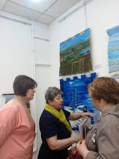 На открытии выставки не только прозвучало множество тёплых слов и восхищённых отзывов в адрес авторов, но и сами мастерицы поделились некоторыми секретами ручного ткачества, показав простейшие элементы плетения. Одна из участниц клуба выразила согласие провести обучающих курс для североморцев, так что мы открываем запись на курс "Гобелен" и приглашаем Вас освоить эту удивительную и завораживающую технику рукоделия.
