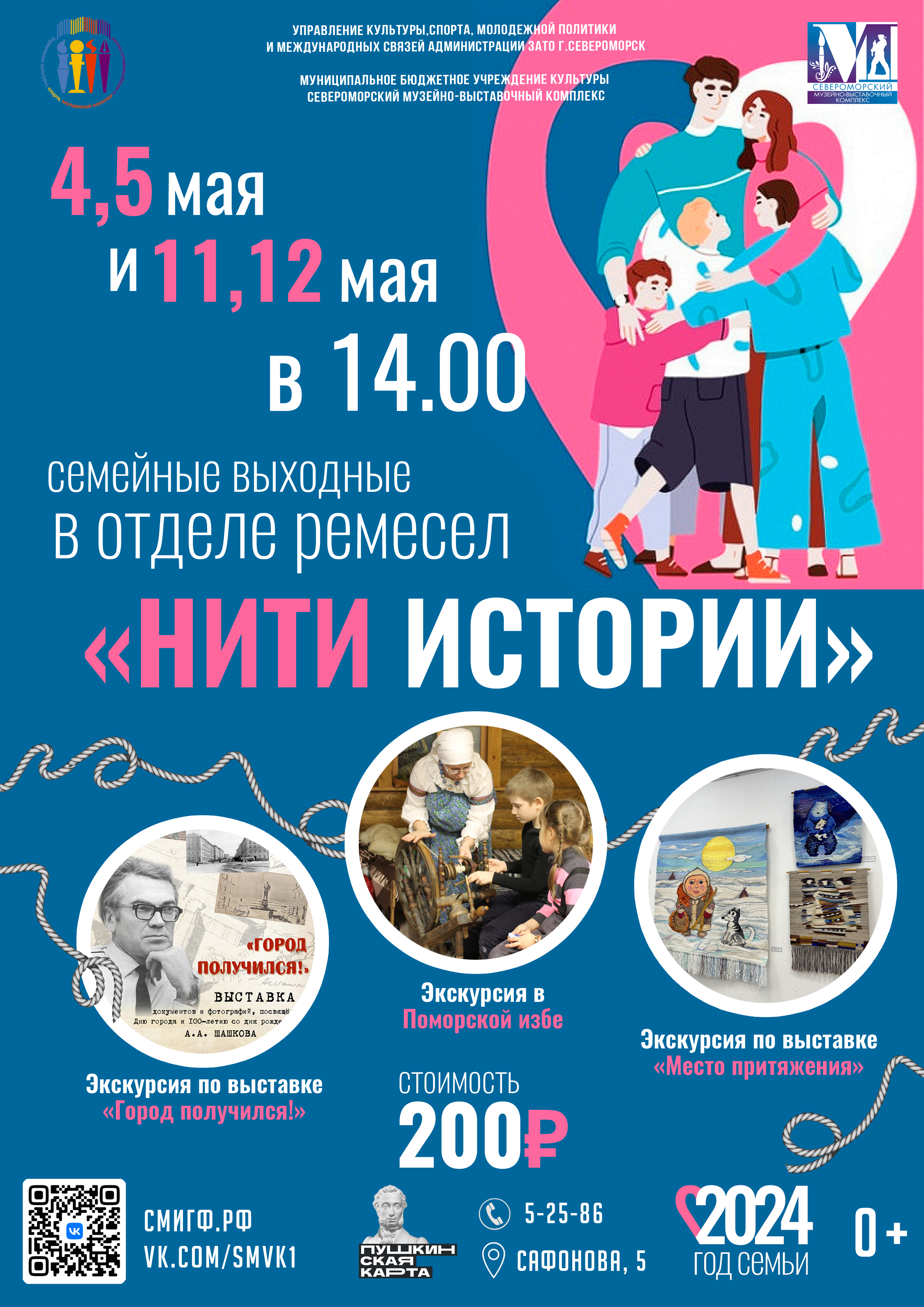 В ближайшие субботу и воскресенье (4, 5, 11 и 12 мая) Отдел ремёсел МБУК СМВК подготовил для вас программу «Нити истории», которая включает в себя: