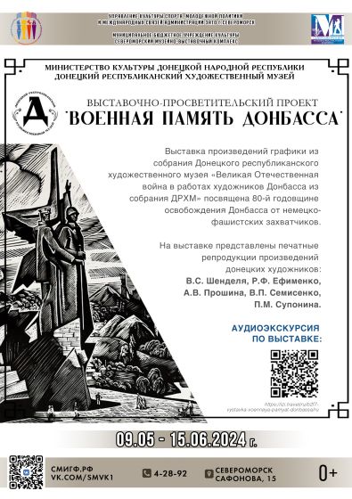 9 мая в Музее истории города и флота начала работу выставка произведений графики из собрания Донецкого республиканского художественного муzея «Великая Отечественная война в работах художников Донбасса из коллекции ДРХМ» в рамках выставочно-просветительского проекта «Военная память Донбасса».