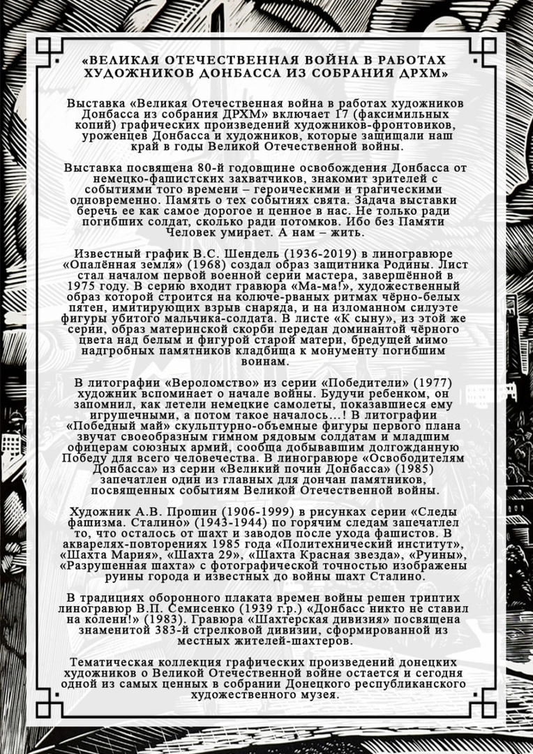 Аудиоэкскурсия по выставке: https://izi.travel/ru/b2f7- vystavka-voennaya-pamyat-donbassa/ru