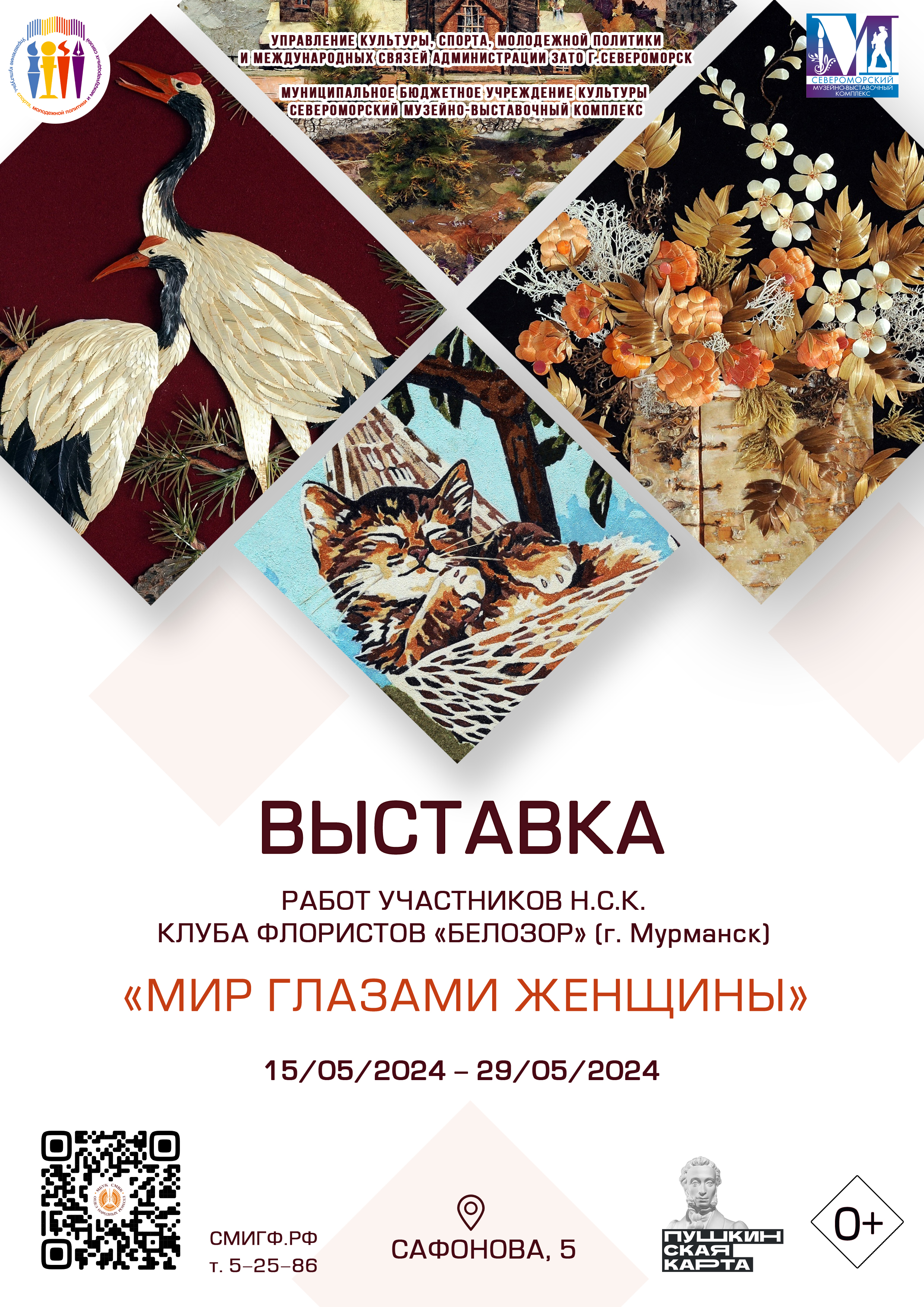 18 мая в Отделе ремёсел МБУК СМВК состоялось открытие выставки работ участников народного самодеятельного коллектива клуба флористов «Белозор» (г. Мурманск) − «Мир глазами женщины».