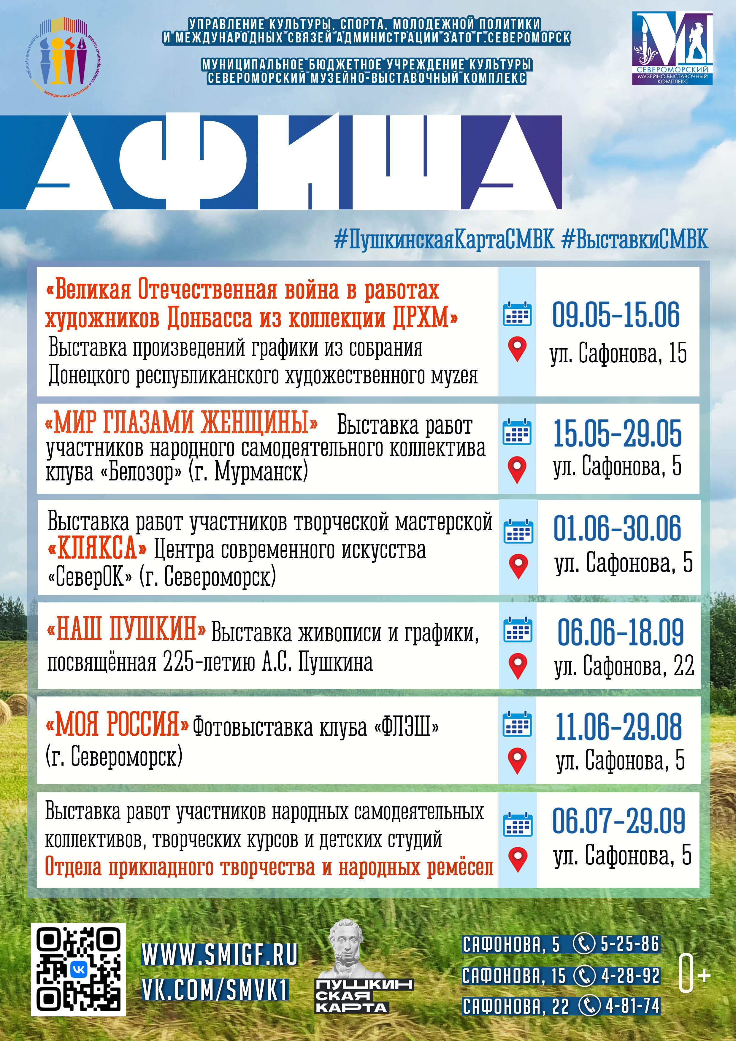 Представляем вашему вниманию афишу выставок в летние месяцы в Североморском Музейно-выставочном комплексе.