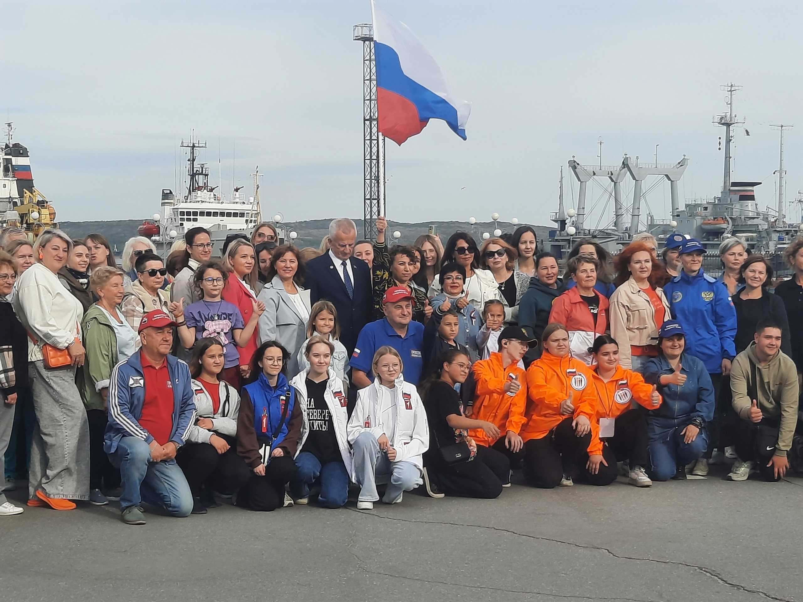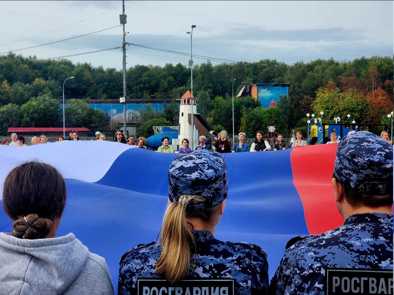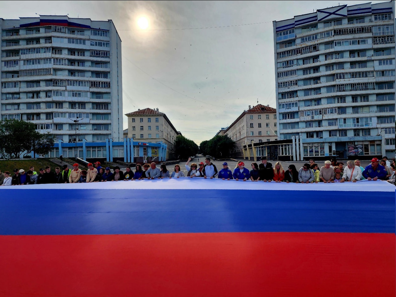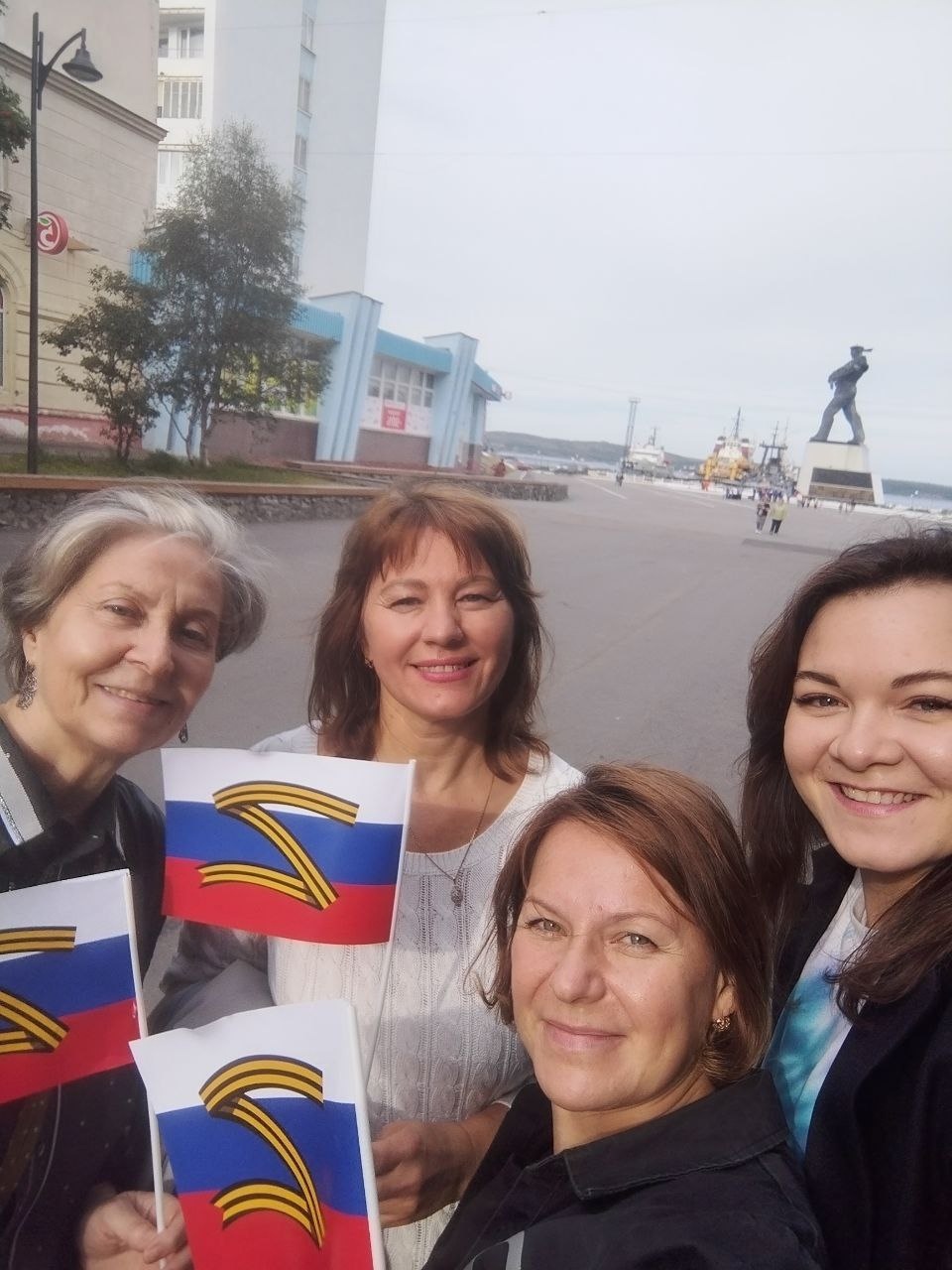 Утром в Североморске на флагштоке мыса Алыш был торжественно поднят российский триколор. Сотрудники МБУК СМВК приняли участие в разворачивании копии флага РФ на Приморской площади.