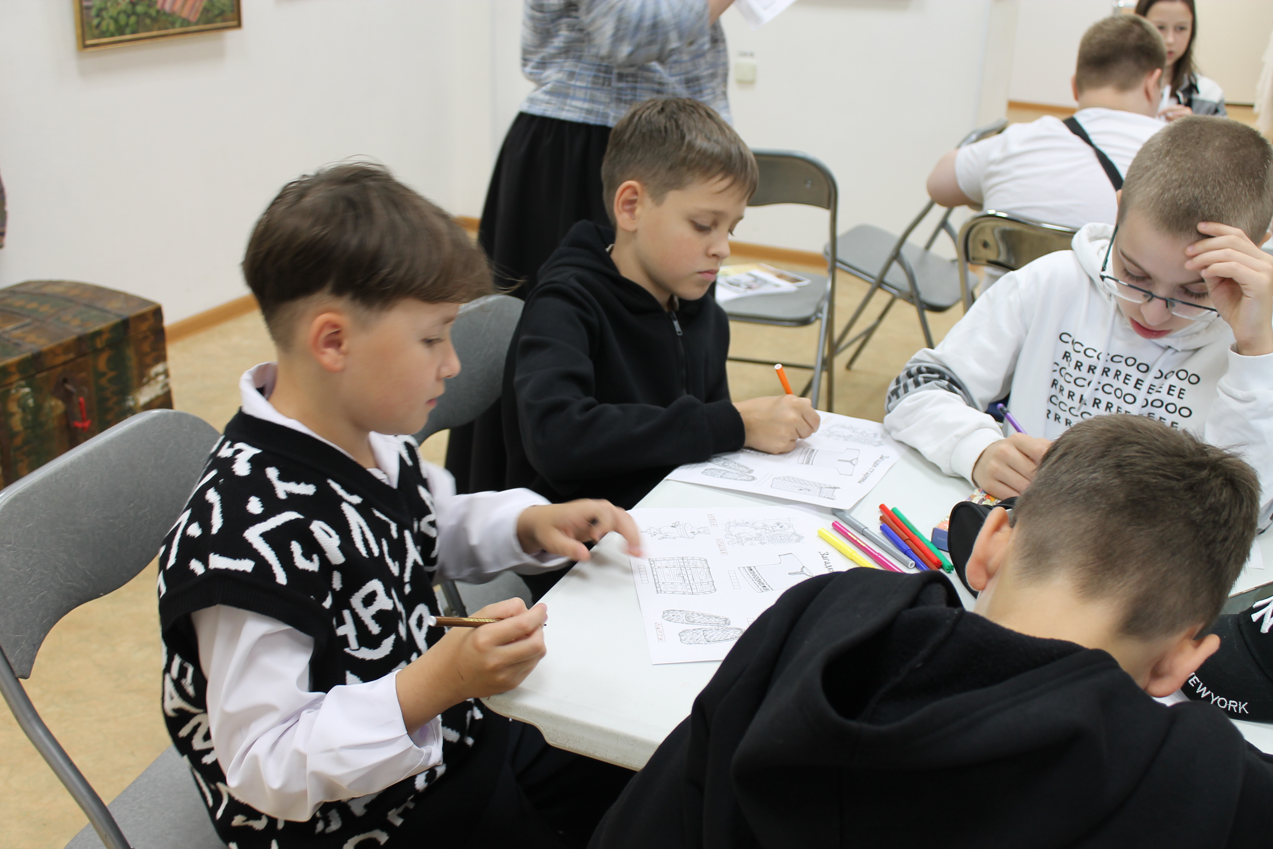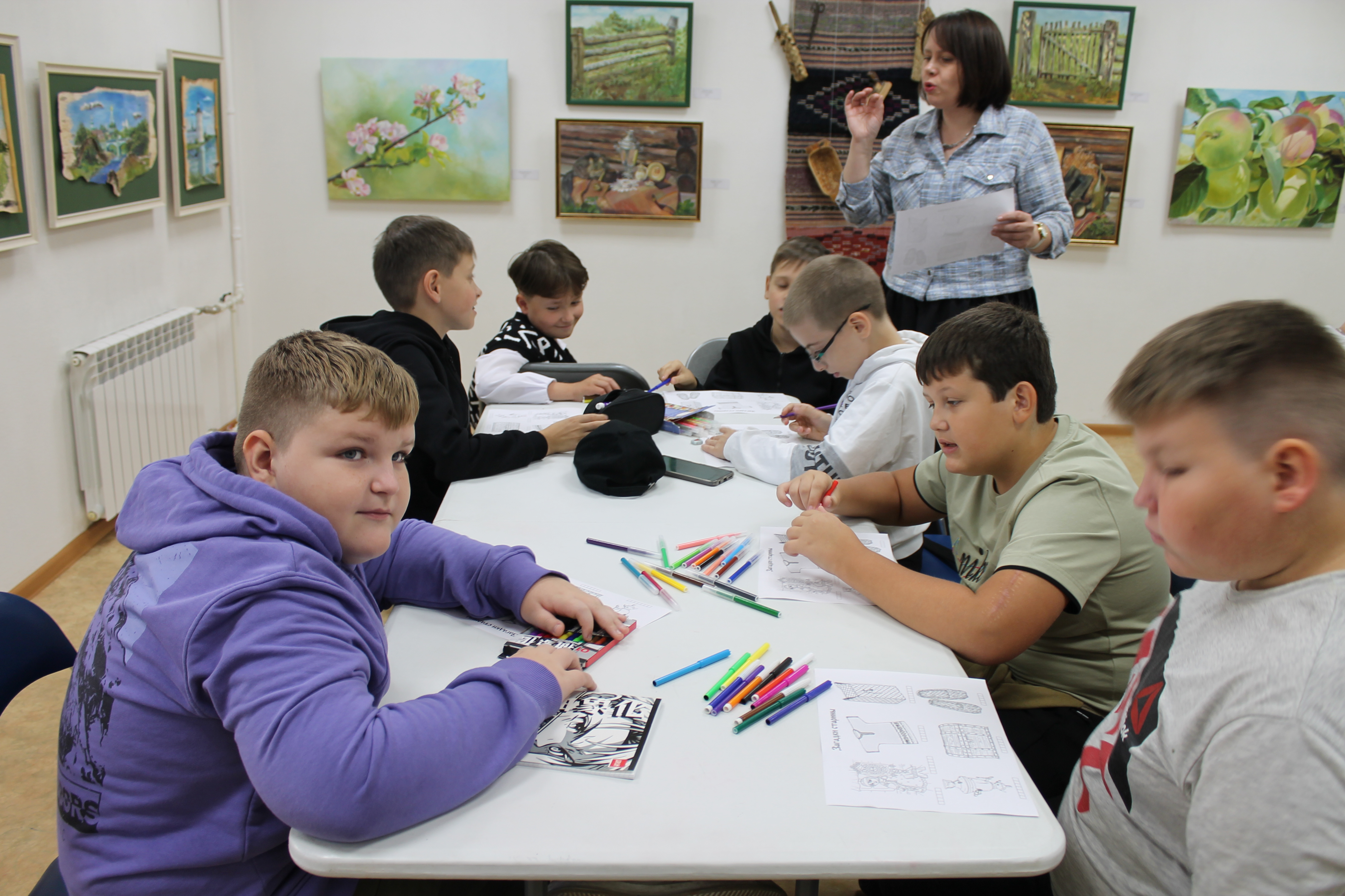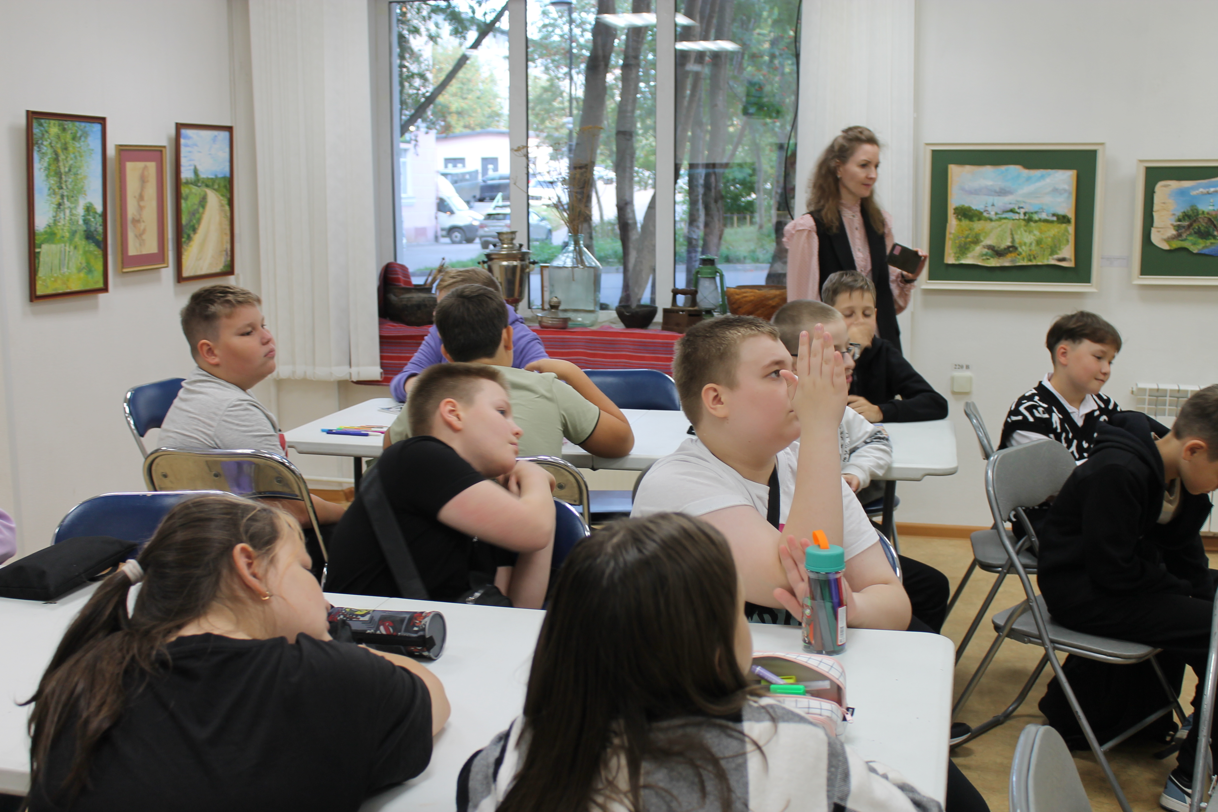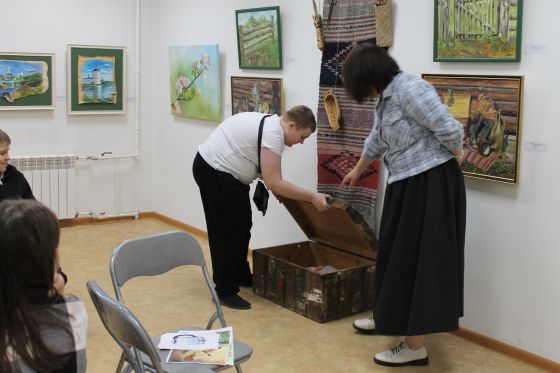 В Выставочном зале побывали ученики 5 «А» класса школы №7 со своим классным руководителем. Увидеть картины на бересте, деревенские пейзажи, предметы, которыми пользовались наши предки, узнать, как они работали − все было интересно! Приоткрыть крышку старинного сундука, оценить вес утюга, которым ловко пользовались прабабушки, понять, как работал самовар...Музейное занятие погружает в жизнь наших предков!