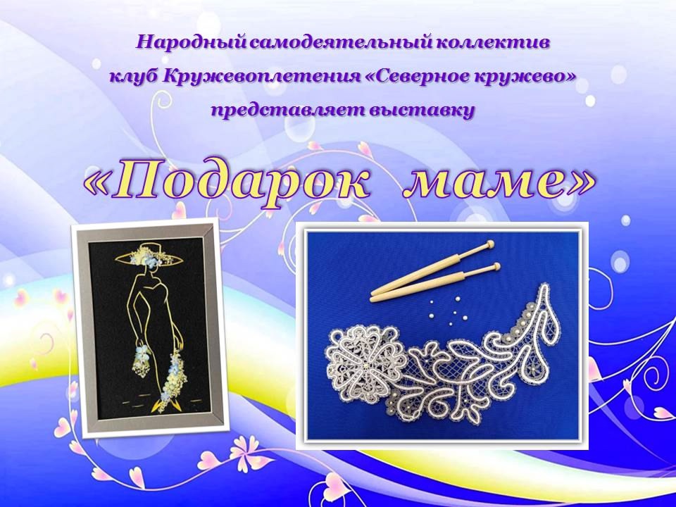 Участники Народных самодеятельных коллективов клуба кружевоплетения «Северное кружево» и клуба флористики «Орхидея» предлагают жителям и гостям города окунуться в волшебный мир коклюшечного кружева и прессованной флористики, посетив выставку «Подарок маме», которая открылась в Центральной городской библиотеке имени Л. Крейна (ул. Кирова д. 2).