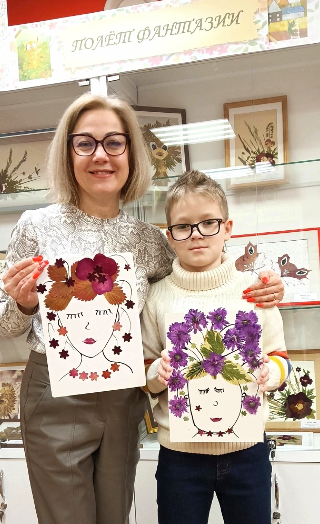 Руководит клубом Татьяна Григорьевна − талантливый педагог, профессиональный дизайнер. На протяжении многих лет она является руководителем клуба флористов в Отделе прикладного творчества и народных ремёсел МБУК СМВК. Работы, представленные на выставке, чудо как хороши! Это флористические панно и картины, миниатюры и композиции. В них столько невидимых на первый взгляд деталей.