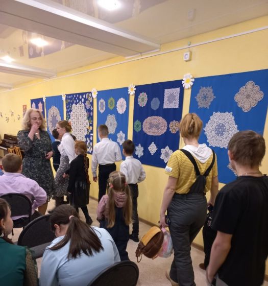 С 24 февраля по 31 марта 2025 года в актовом зале Детской школы искусств н.п. Коашва проходит выставка «Её величество салфетка». Участники народного самодеятельного коллектива клуба кружевоплетения «Северное кружево» представили коллективные и индивидуальные работы, выполненные в технике кружевоплетения на коклюшках.