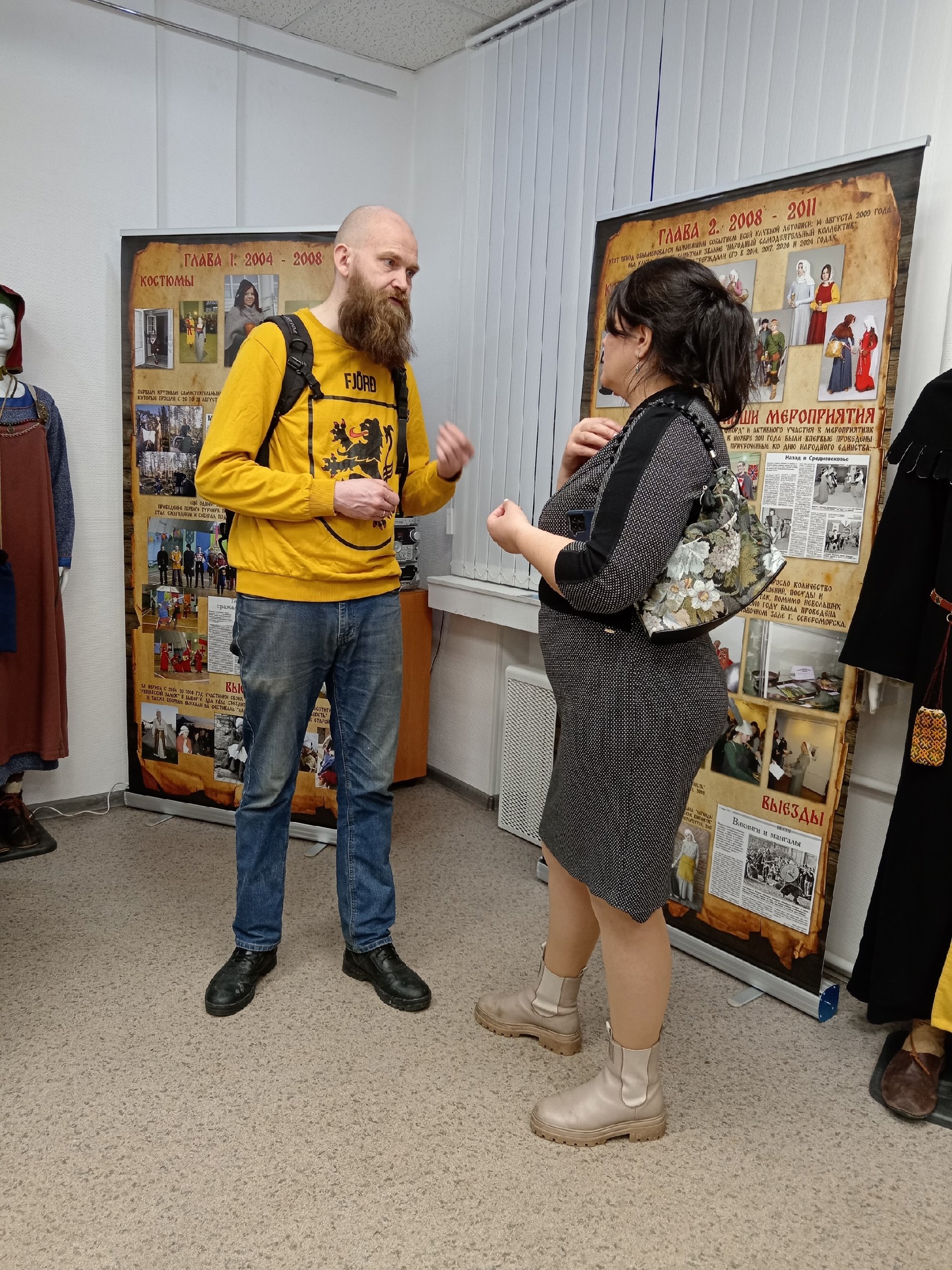 Выставка будет работать до 16 апреля и мы приглашаем всех желающих погрузиться в мир исторической реконструкции и познакомиться с деятельностью уникальных североморских коллективов «Светлица» и «Фьорд». Возможно проведение авторских экскурсий от руководителя клуба «Светлица» Веры Шимориной.