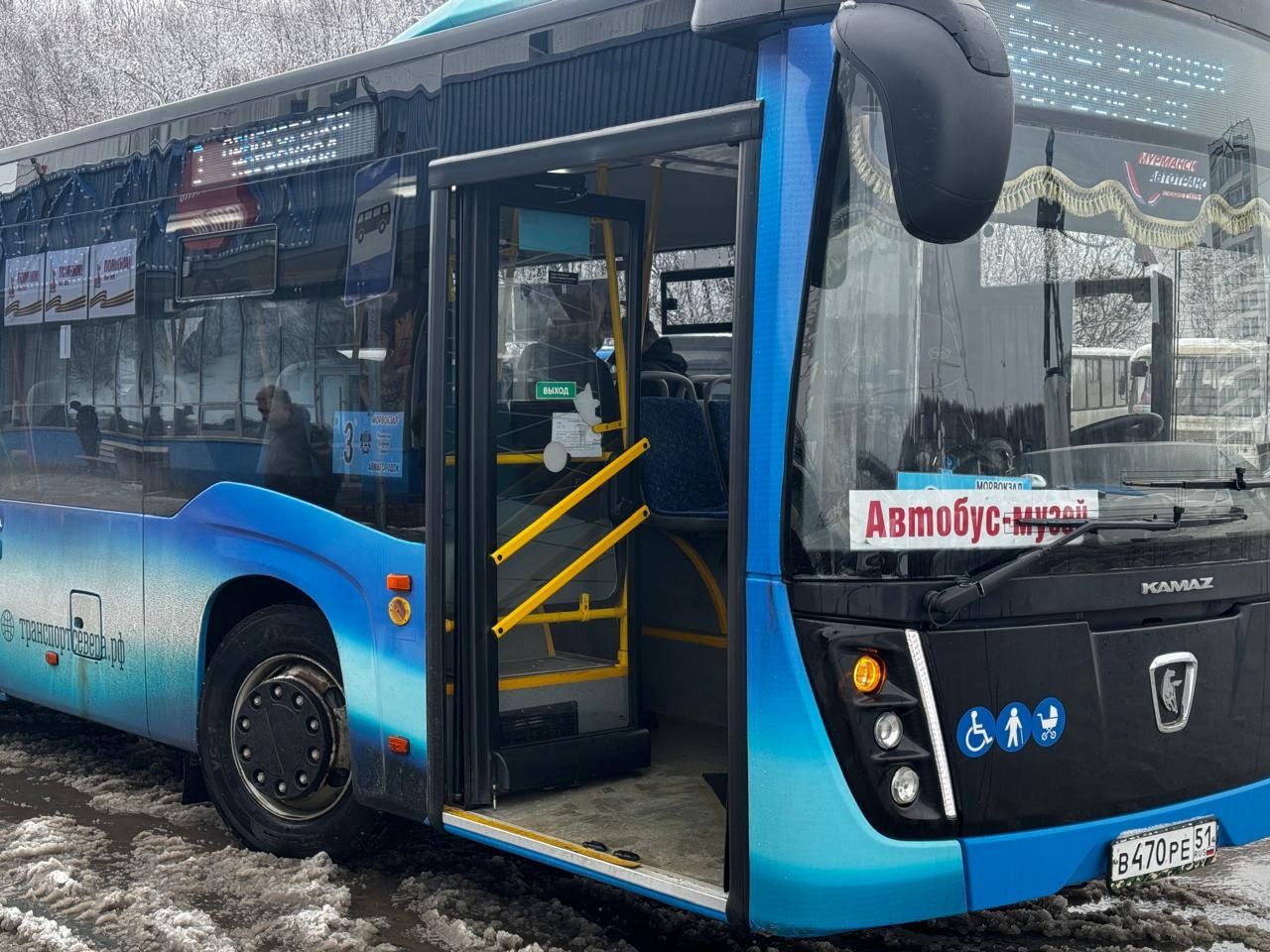 15 апреля в преддверии Дня рождения Североморска пассажиры городского маршрута №3 стали участниками торжественного открытия просветительcкой акции «АВТОБУС-МУЗЕЙ» , посвящённой 80-летию Победы в Великой Отечественной войне. Для них была проведена экскурсия, рассказывающая о памятниках и героях-североморцах, чьи имена носят улицы города.