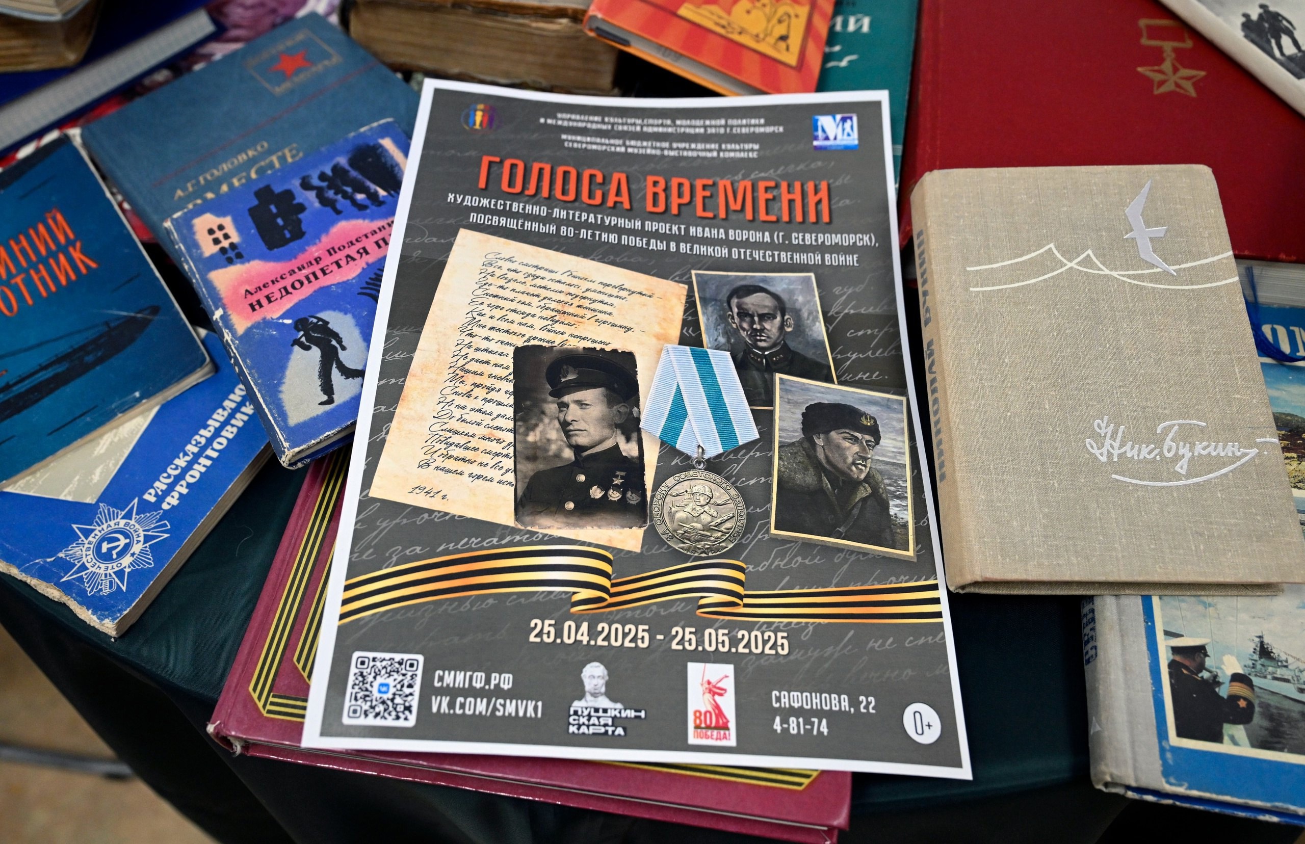 Готовясь к 80-летию Великой Победы, коллектив Североморского Музейно-выставочного комплекса хотел сделать что-то особенное к этой знаменательной дате. Вместе с нашим замечательным художником Иваном Вороном ему это блестяще удалось. Выставка «Голоса времени» получилась злободневной, философской, жизнеутверждающей, поучительной, интересной, интерактивной.
