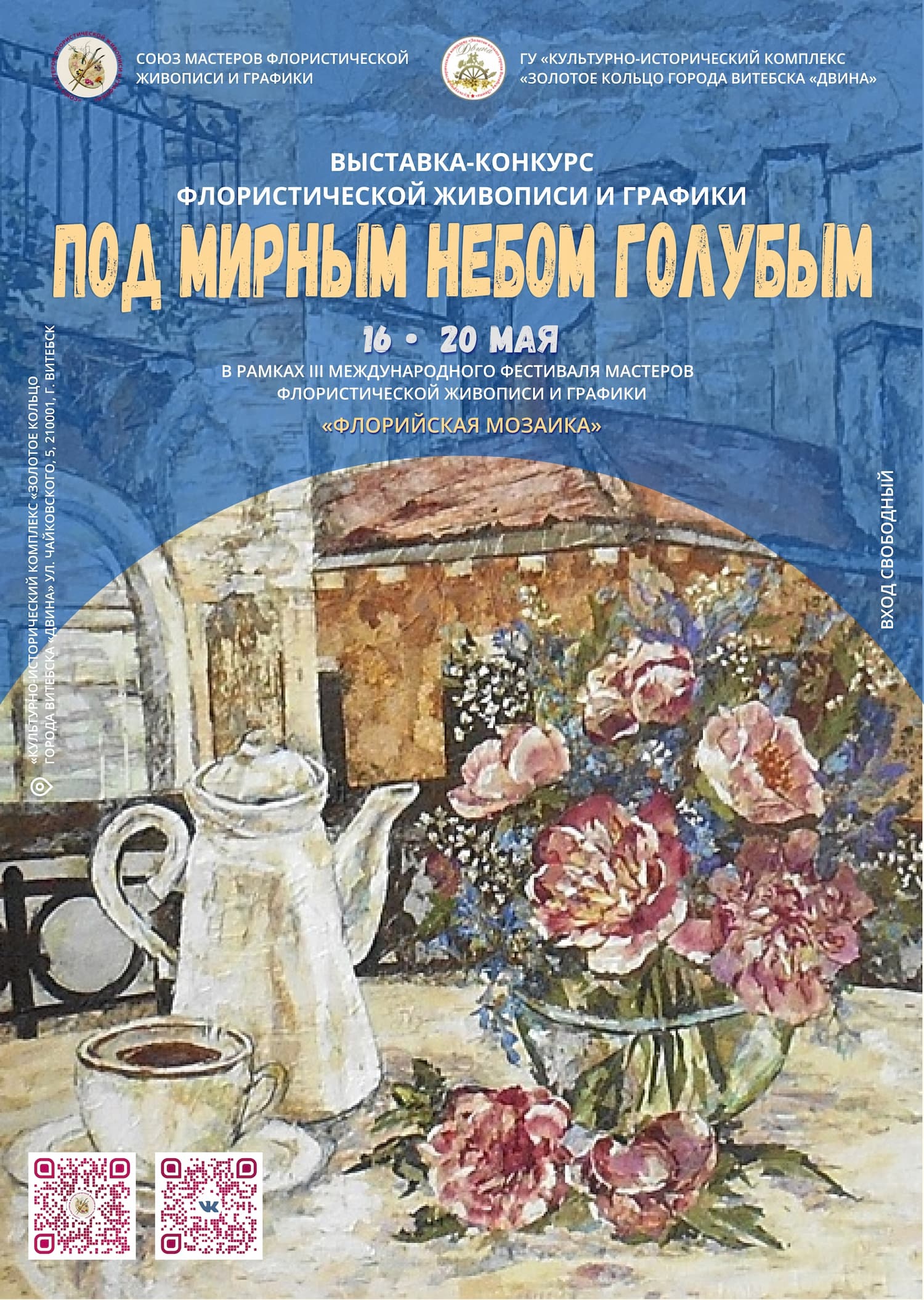 В рамках фестиваля проходит выставка-конкурс «Под мирным небом голубым». В первый день фестиваля состоялся монтаж выставки, знакомство участников, а также была организована экскурсия в Художественный музей г. Витебска, которую провёл заведующий музея Богатёнок Александр Афанасьевич. Впереди ещё несколько творчески насыщенных дней.