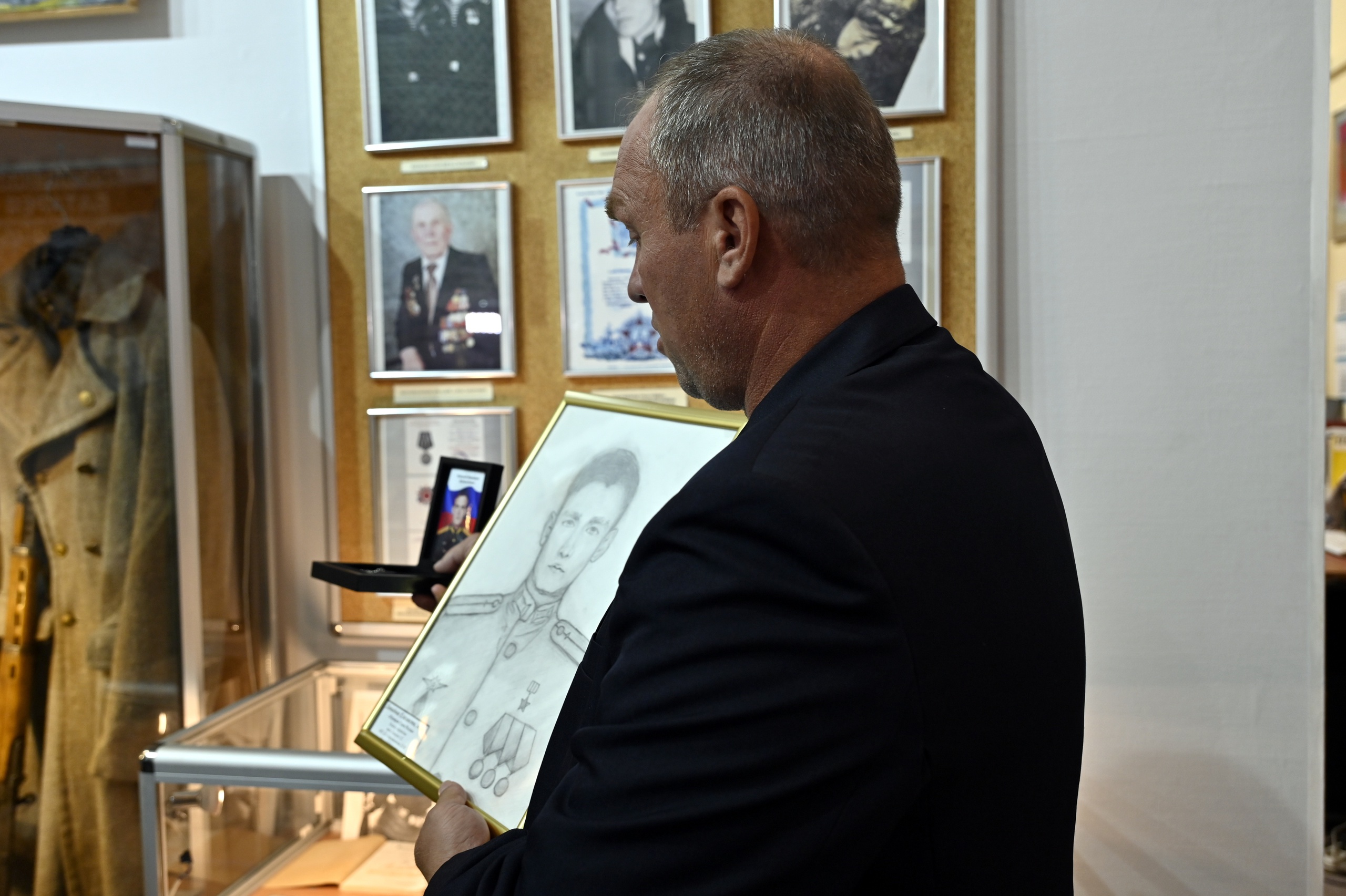 С Иваном Николаевичем сотрудники Североморского музея познакомились в ноябре 2024 года. В январе 2025 года музей получил посылку с формой и ксерокопиями документов Героя России лейтенанта Данильченко Николая Ивановича. И вот, в День ВМФ, Иван Николаевич сам приехал из Омска в Североморск и передал портрет и жетон с личным номером своего сына. На встрече присутствовали Андрей Чибис , Губернатор Мурманской области и Владимир Евменьков , Глава ЗАТО Североморск.