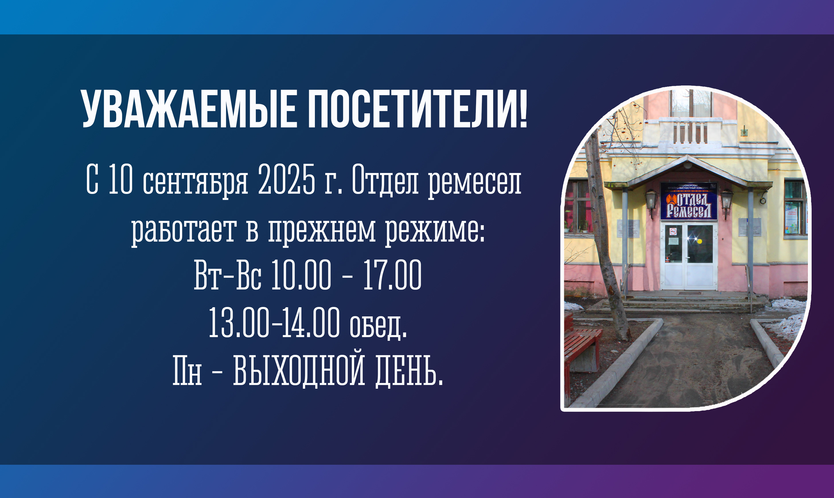 С 10 сентября Отдел ремёсел возвращается к прежнему режиму работы и открыт для посещения!