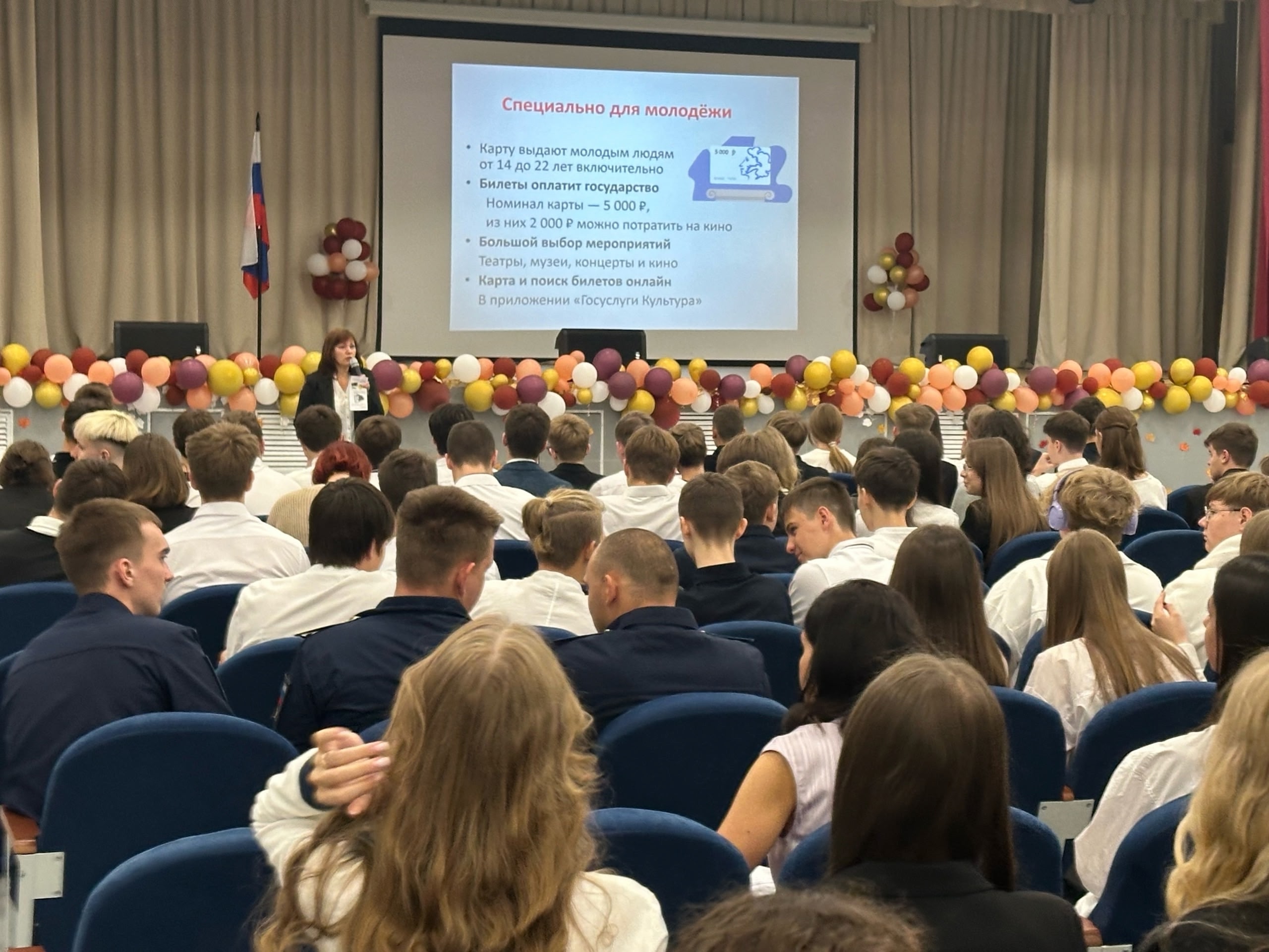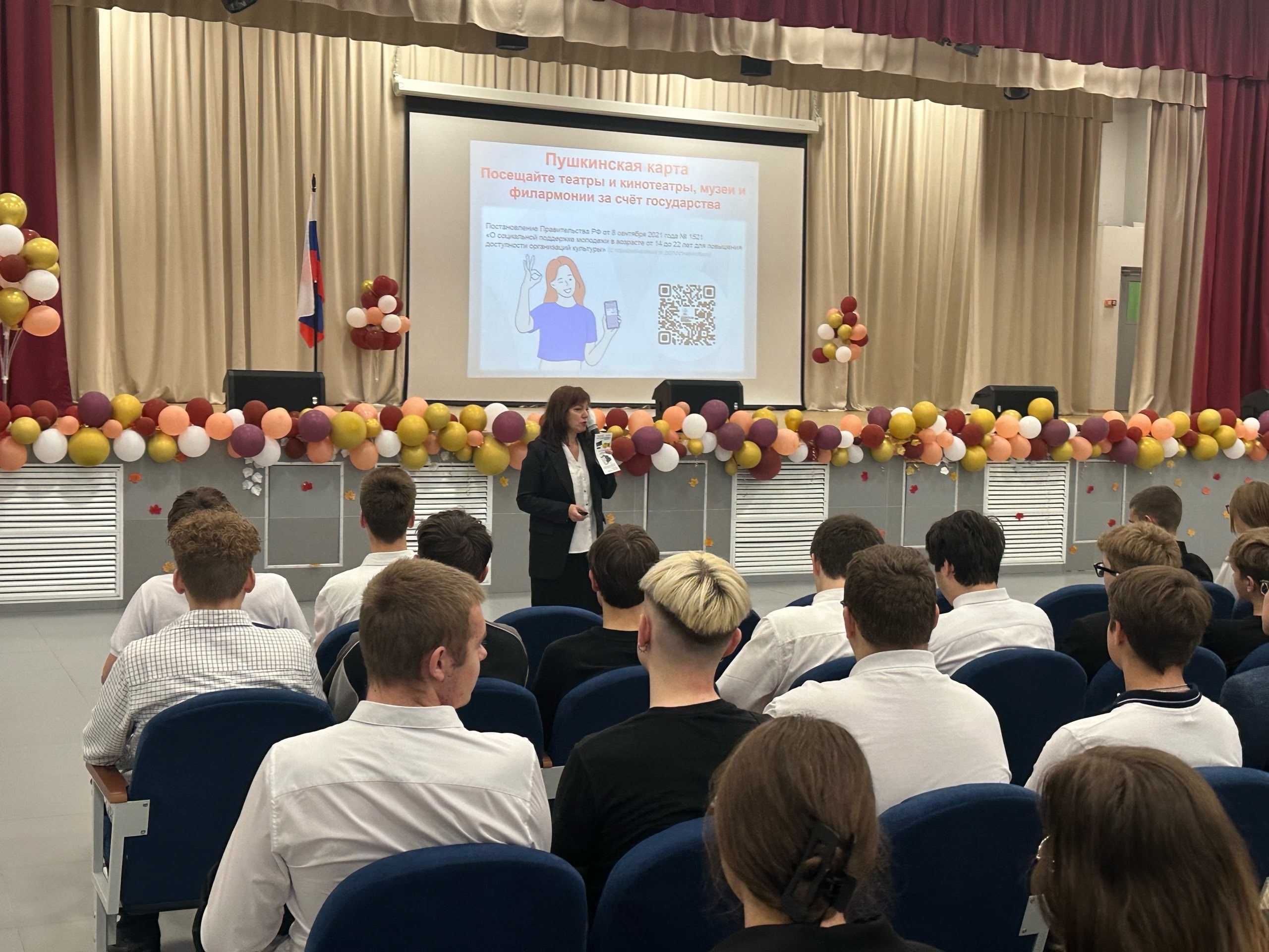 О Пушкинской карте, о том, как её получить и какие мероприятия проходят в музейно-выставочном комплексе для молодёжи в рамках этой программы старшеклассникам Лицея #1 рассказала заместитель директора музея Абрамова И.Г.