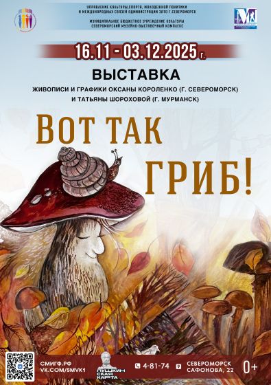 «ВОТ ТАК ГРИБ!» в Выставочном зале СМВК — выставка живописи и графики Оксаны Короленко (г. Североморск) и Татьяны Шороховой (г. Мурманск) открыта!