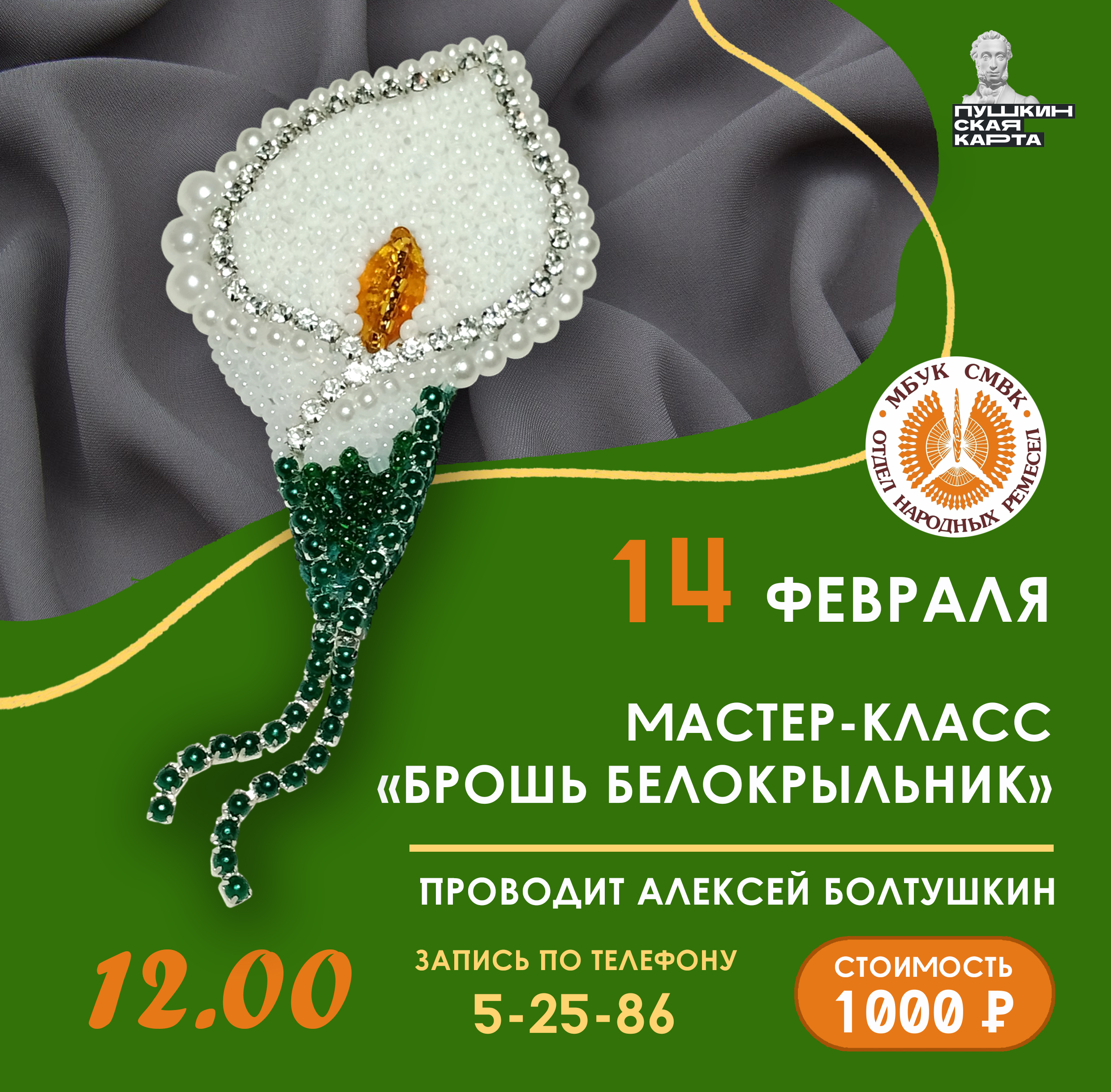 Приглашаем всех желающих на мастер-класс по изготовлению брошь Белокрыльник (Калла).