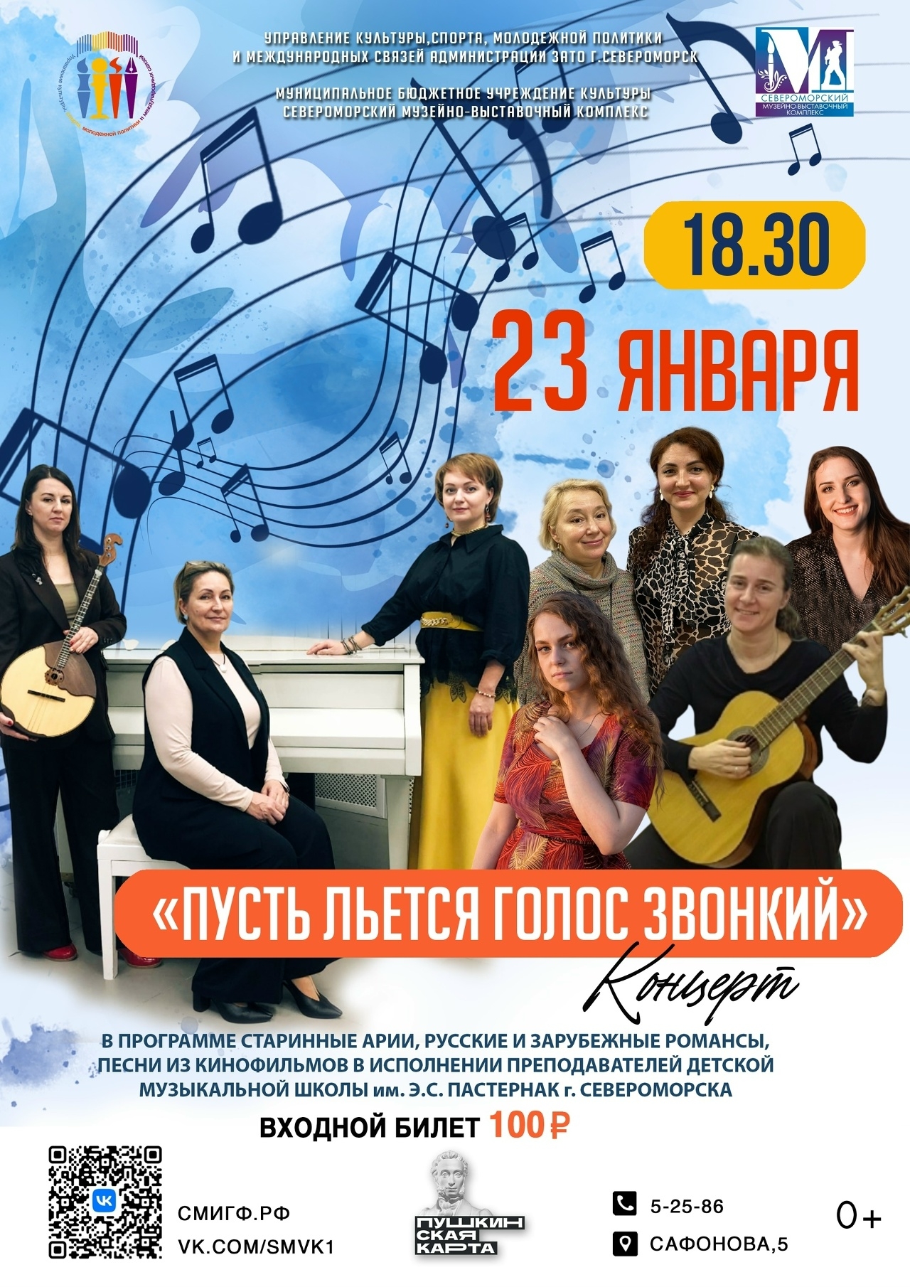23 ЯНВАРЯ в 18.30. приглашаем на концерт вокальной музыки «Пусть льется голос звонкий» .