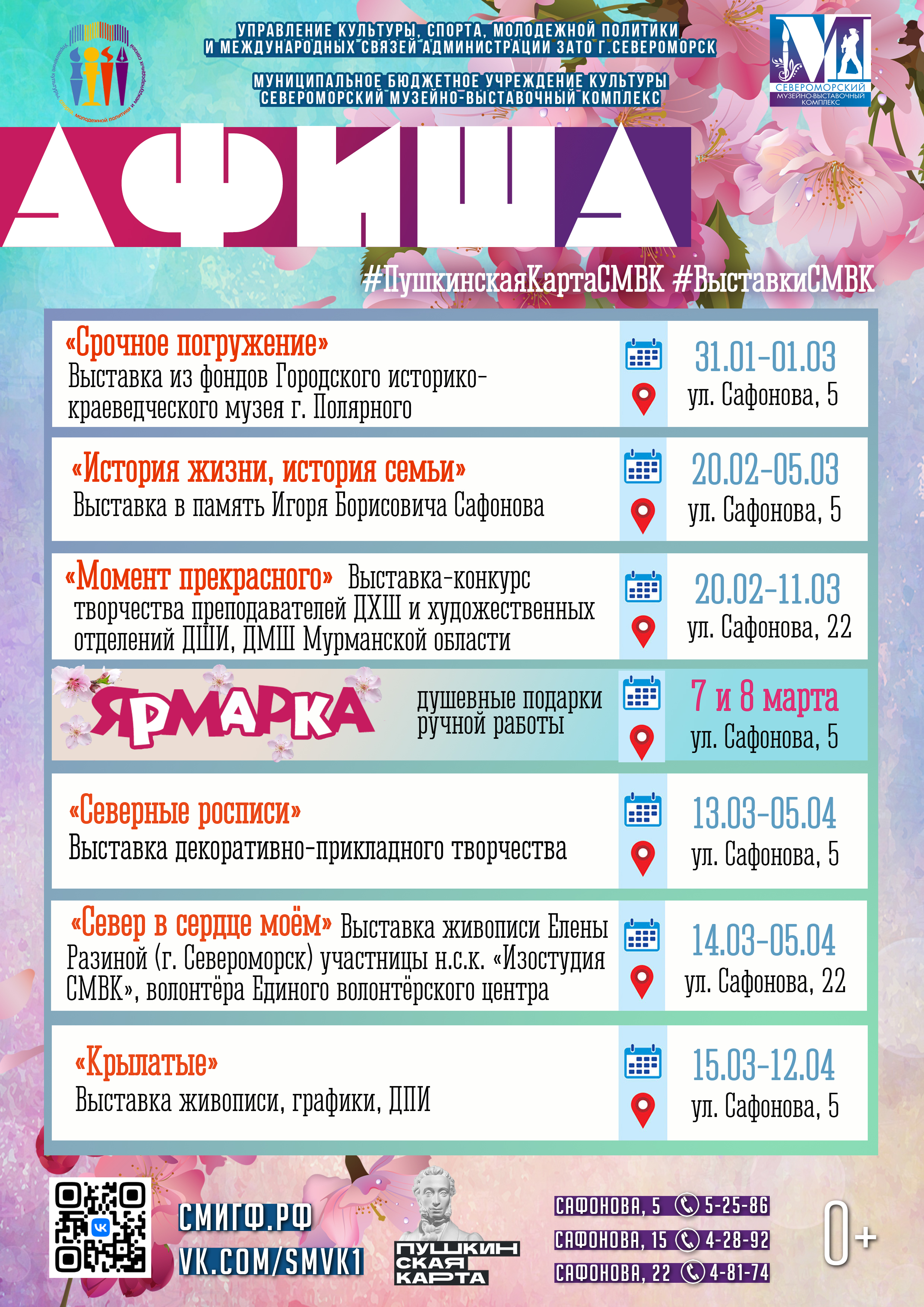 Представляем вашему вниманию афишу ближайших выставок в Североморском Музейно-выставочном комплексе.