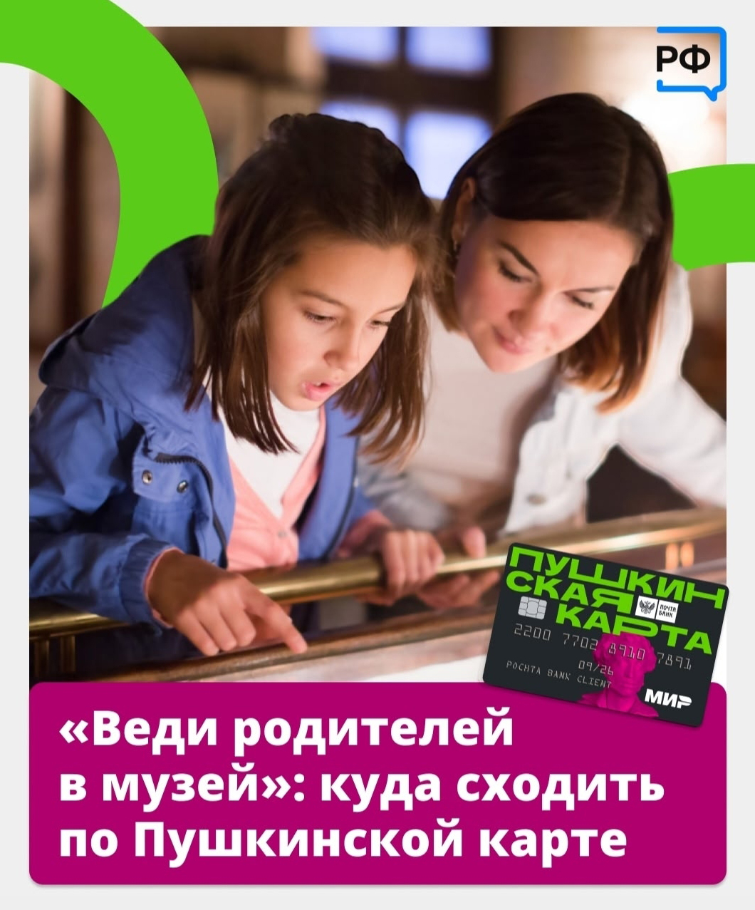 До 5 апреля по всей стране проходит акция «Веди родителей в музей». Правила участия простые: ребёнок покупает билет себе по Пушкинской карте, а для родителей входной билет за 75 рублей.