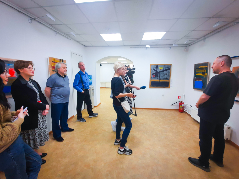 Абстракции, интересные названия, сопровождающиеся стихами − Дмитрий удивляет зрителей снова. В экспозиции представлено 18 новых работ, а на открытии появилась ещё одна, так и названная — «Открытие».