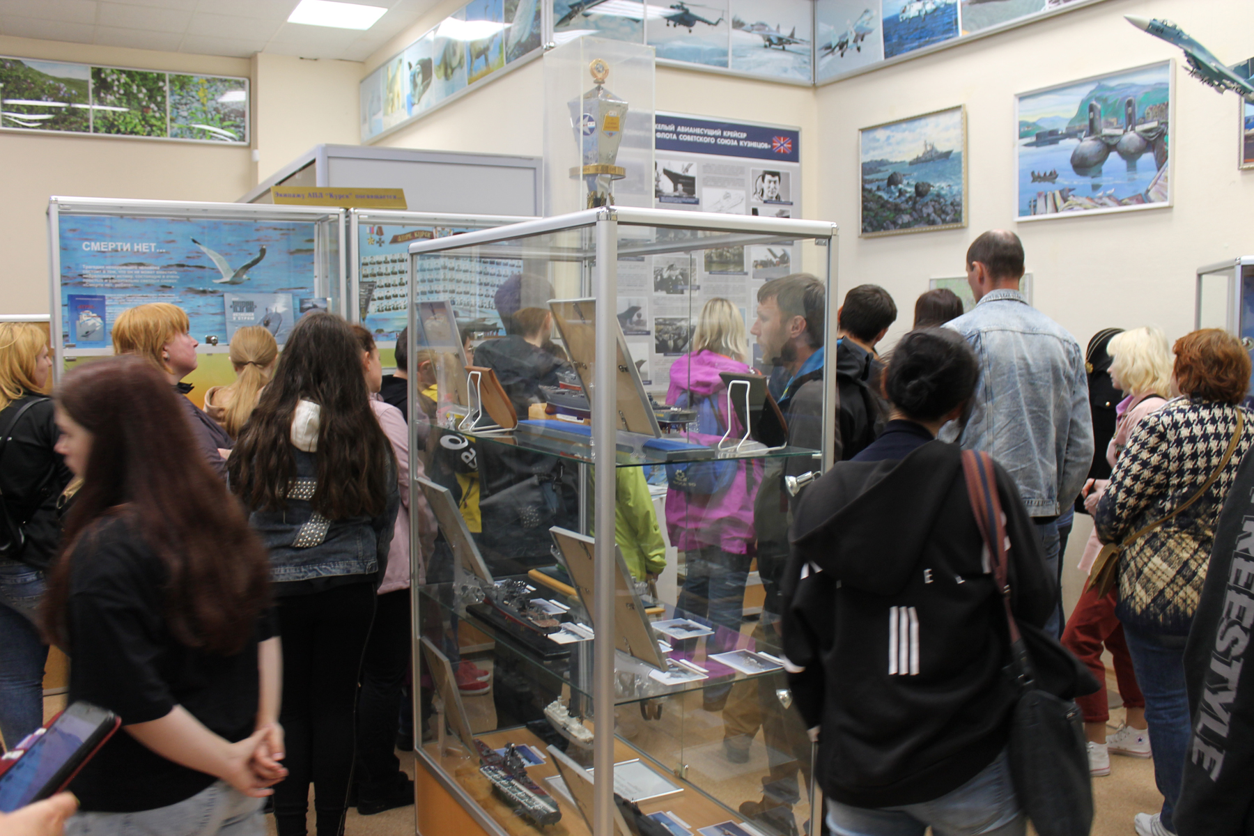 Экспозиция зала Боевой славы Героев-североморцев рассказывает о далеком прошлом поселка Ваенга, об истории создания Северной военной флотилии. В зале Боевой Славы также представлена история обороны Советского Заполярья, разгрома немецко-фашистских войск на Севере, которые яркой страницей вошли в летопись Великой Отечественной войны. В экспозиции представлены обломки самолета ЯК -9, образцы формы периода Великой Отечественной войны. Вторая часть экспозиции в нашем музее посвящена Специальной военной операции. В витринах представлены фотографии и личные вещи военнослужащих СФ и добровольцев-участников СВО. Также в зале можно увидеть трофейные элементы формы сотрудников СБУ, военнослужащего США, шевроны ВСУ, обломки БПЛА иностранного производства.